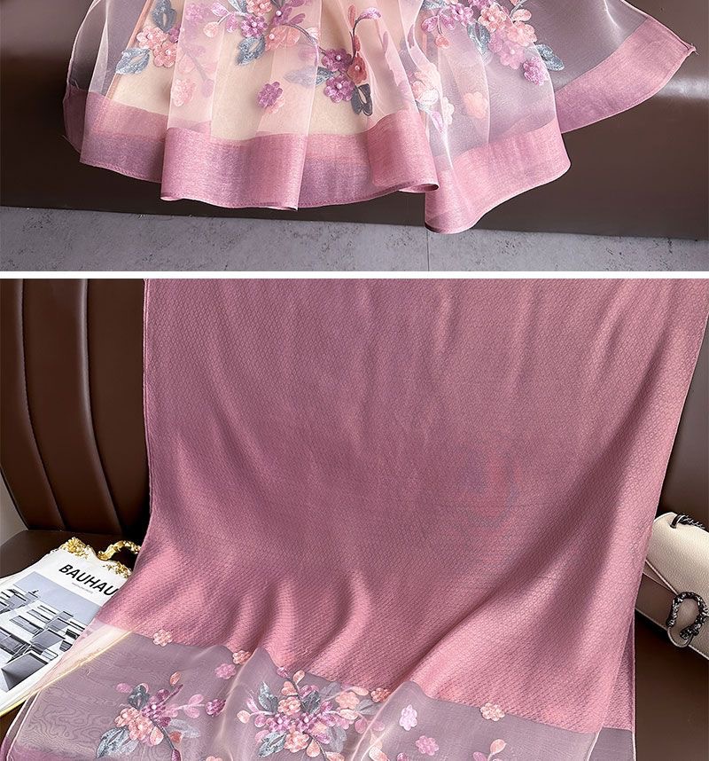 • [라이트핑크] 자수 꽃무늬 스카프