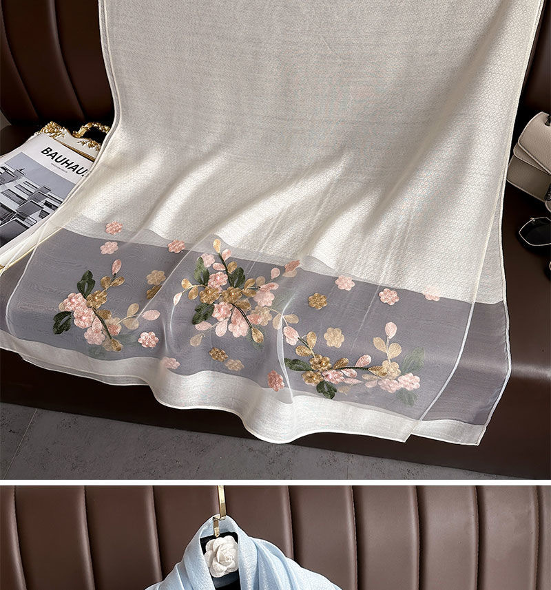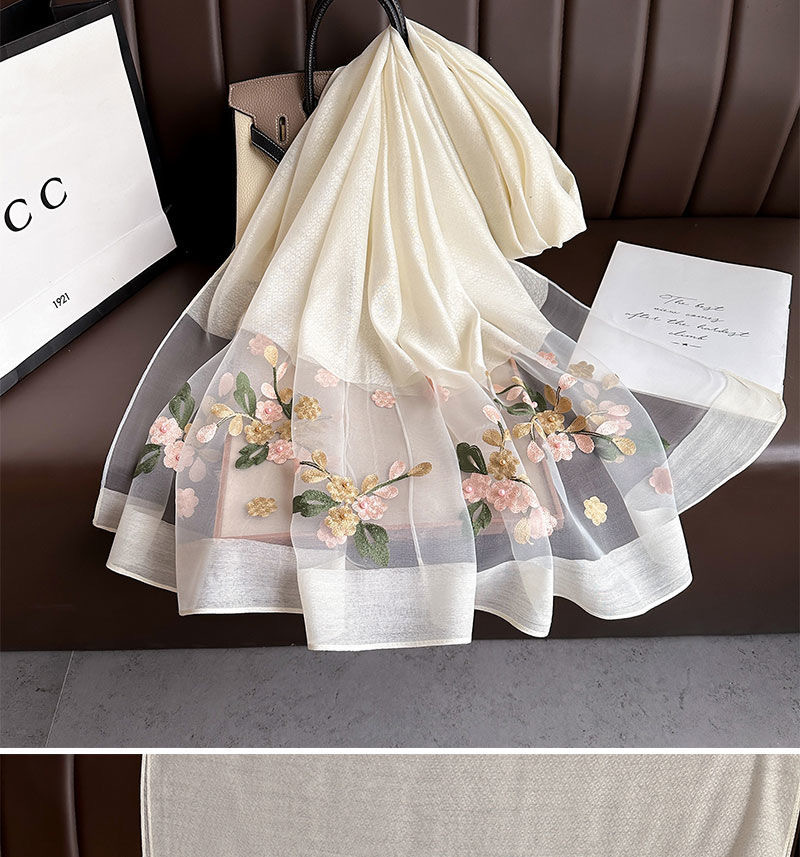 • [오프화이트] 자수 꽃무늬 스카프