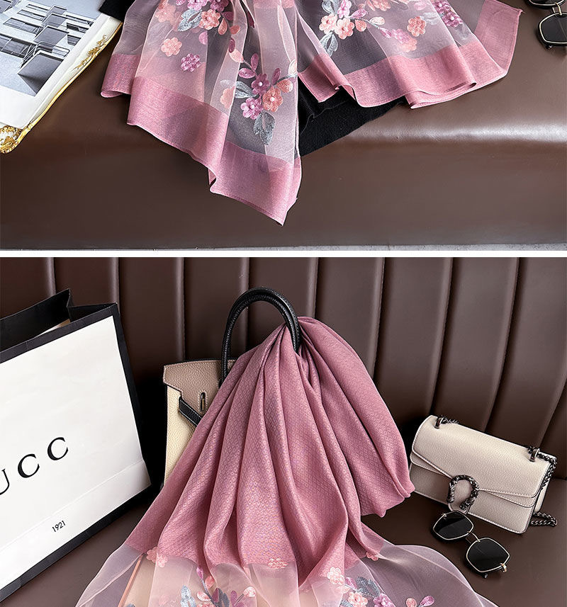 • [로즈핑크] 자수 꽃무늬 스카프