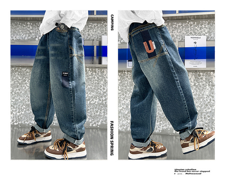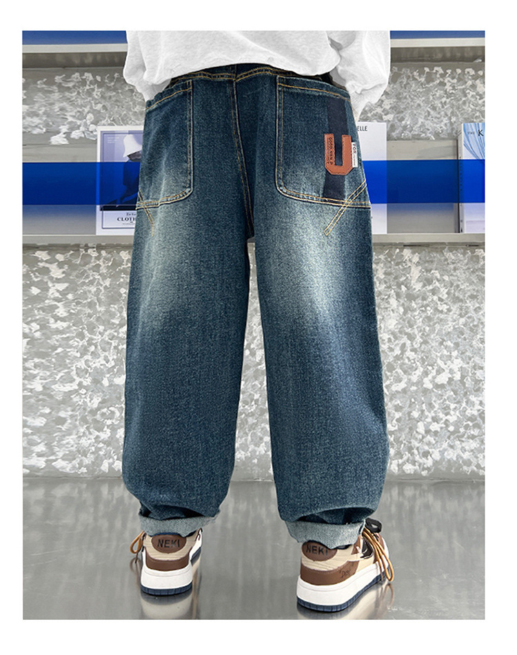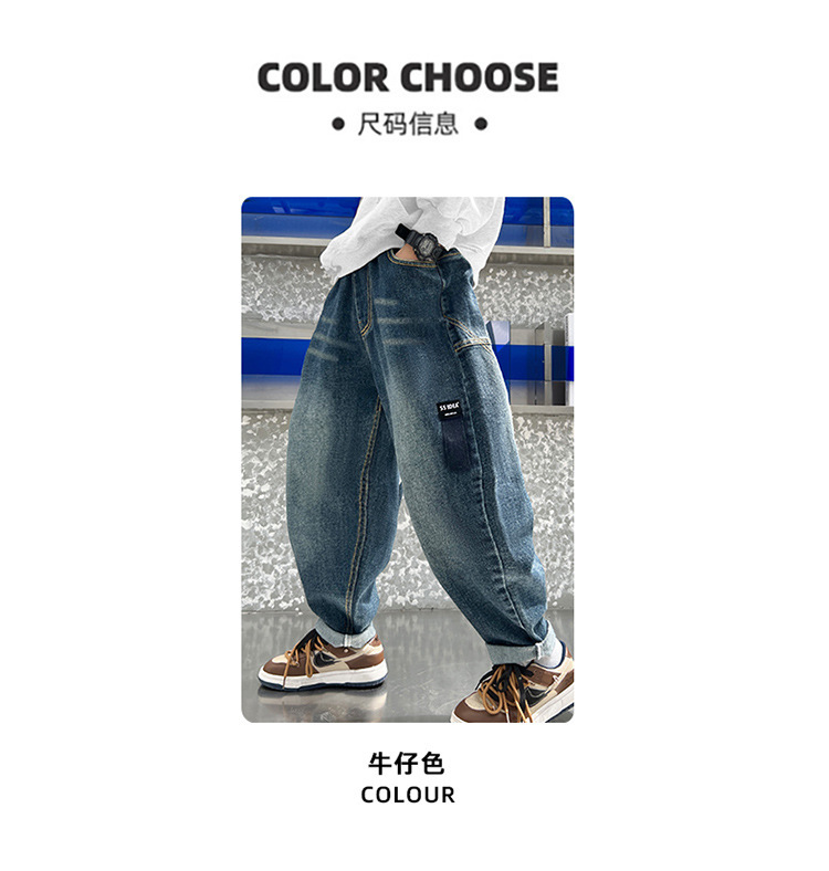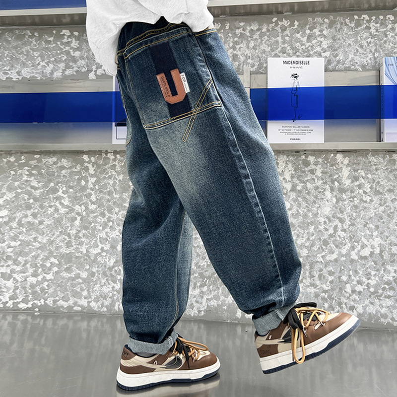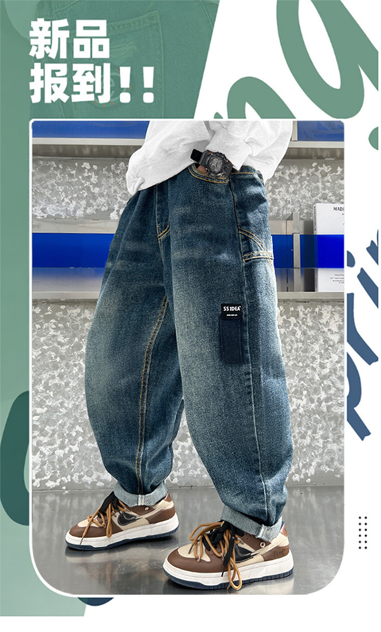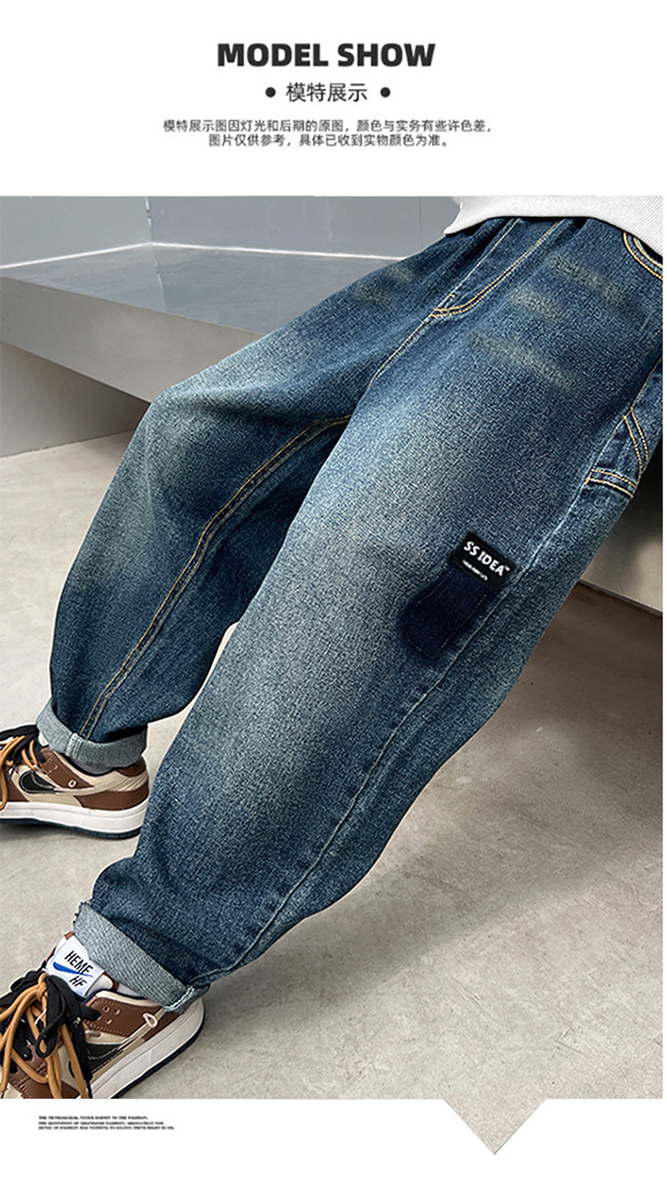 소년 청바지 2024 가을 새로운 스타일 큰 소년 느슨한 스트레이트 캐주얼 바지 잘 생긴 유행 바지스토어 가기