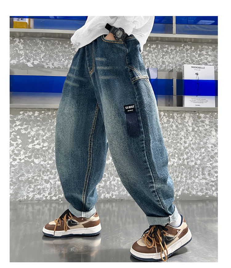 소년 청바지 2024 가을 새로운 스타일 큰 소년 느슨한 스트레이트 캐주얼 바지 잘 생긴 유행 바지