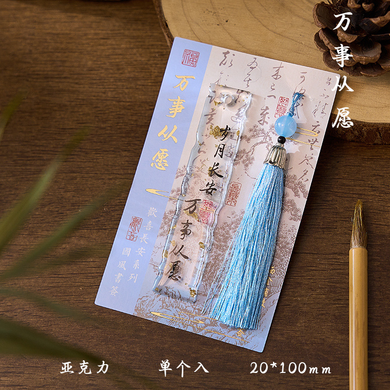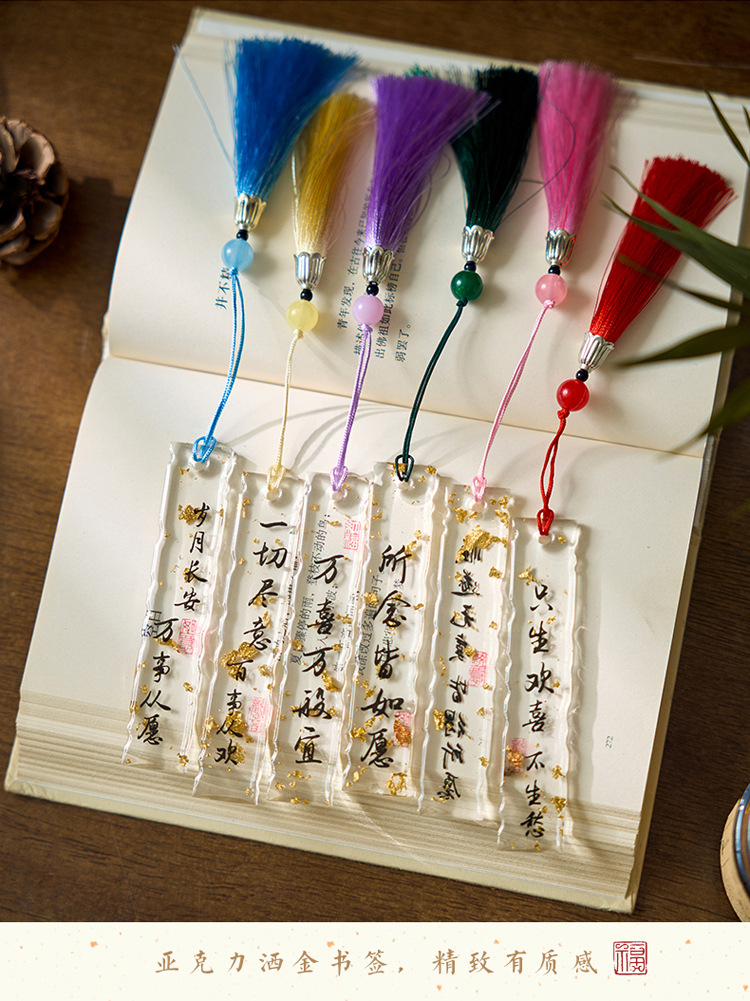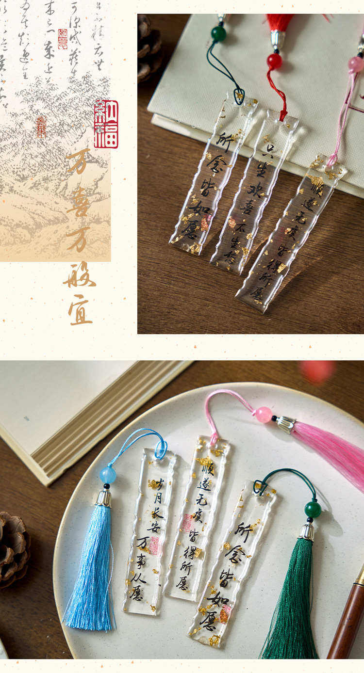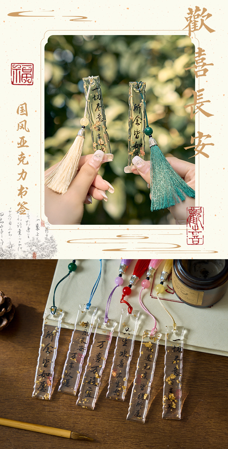 Huanxi Chang'an 면도 골드 아크릴 북마크 국가 스타일 텍스트 축복 핸드북 DIY 가방 펜던트 문화 창조 기념 선물스토어 가기