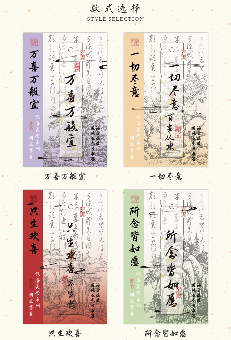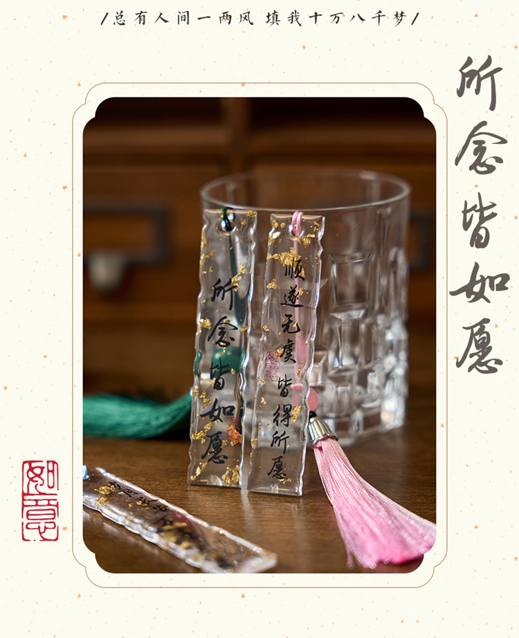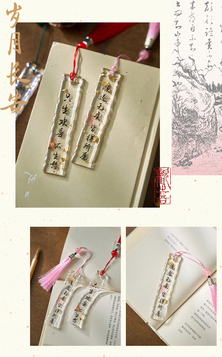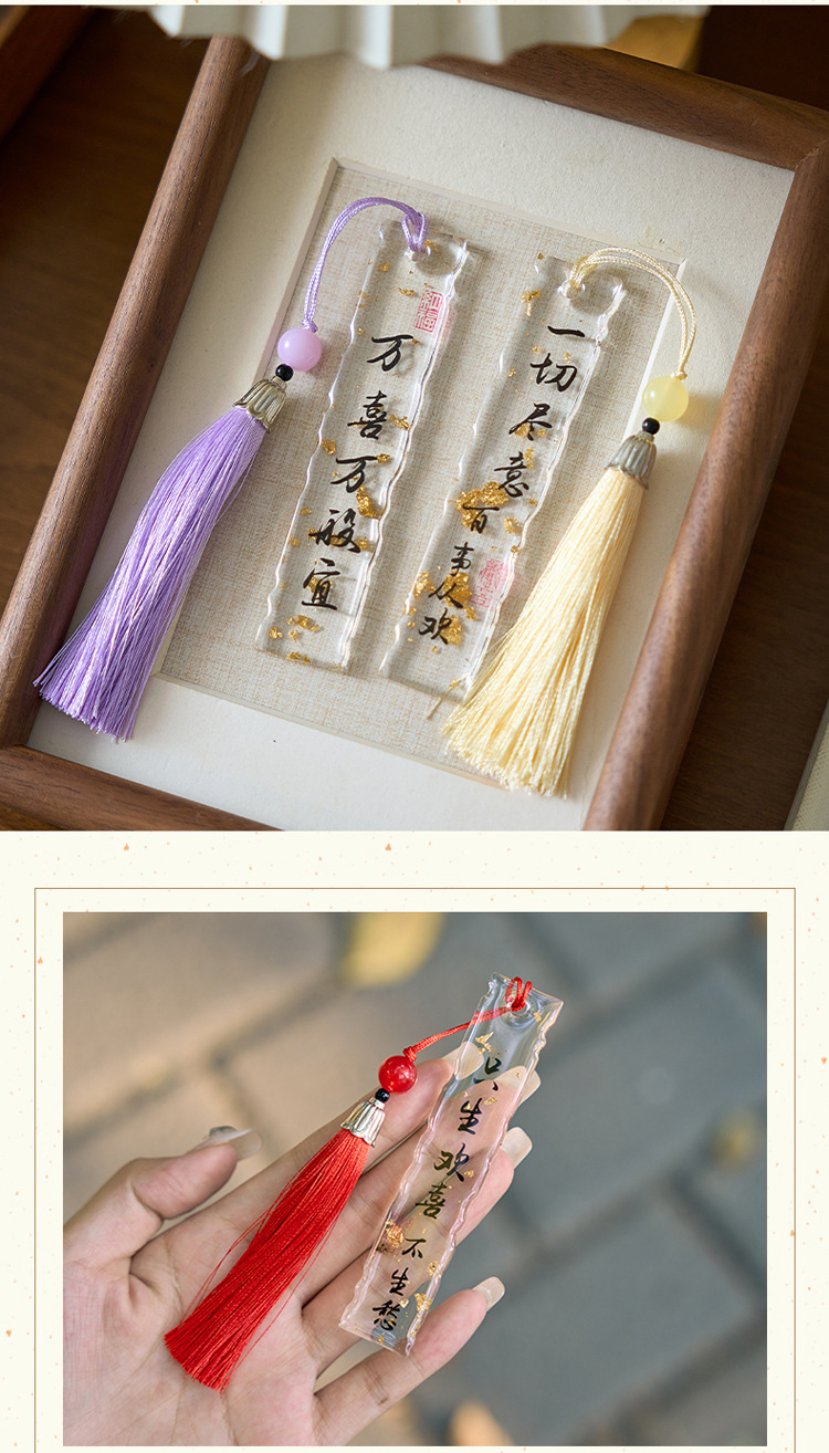 Huanxi Chang'an 면도 골드 아크릴 북마크 국가 스타일 텍스트 축복 핸드북 DIY 가방 펜던트 문화 창조 기념 선물스토어 가기