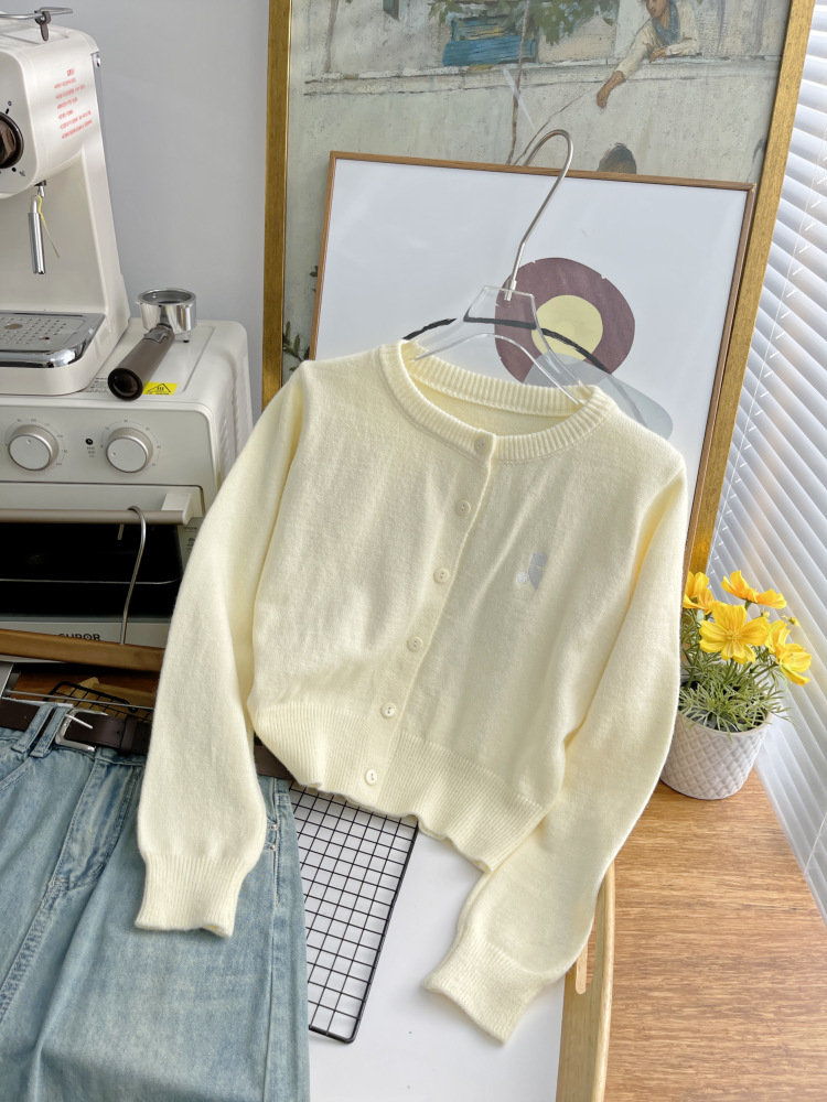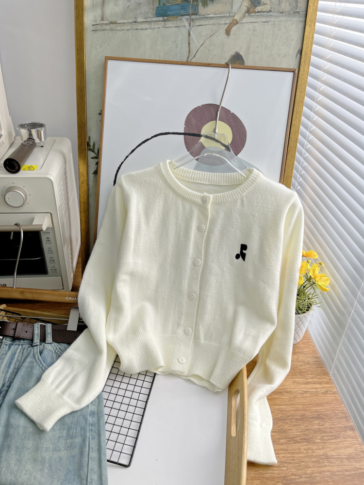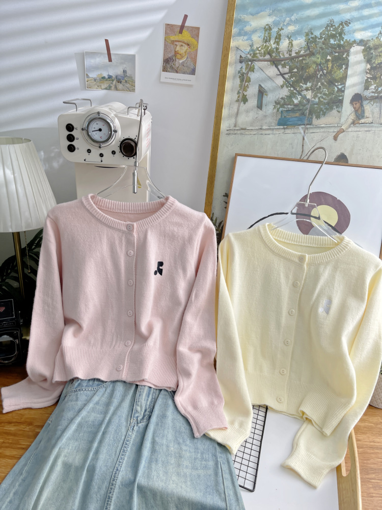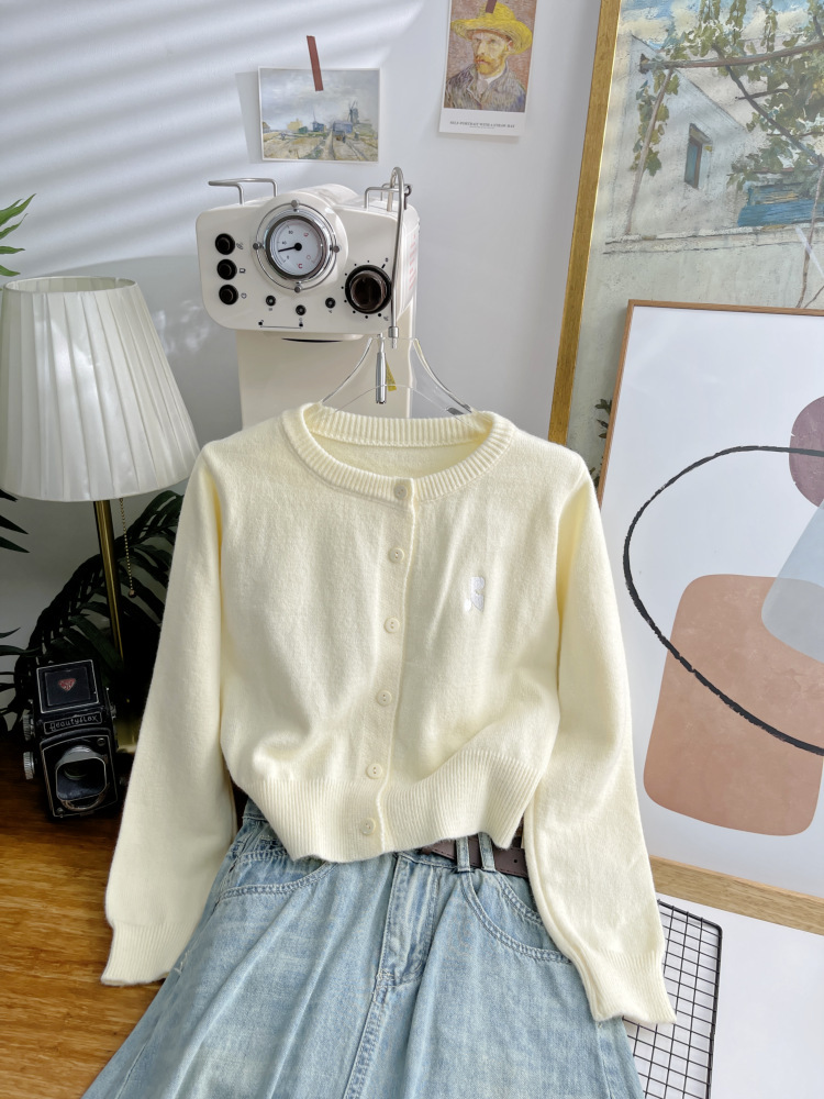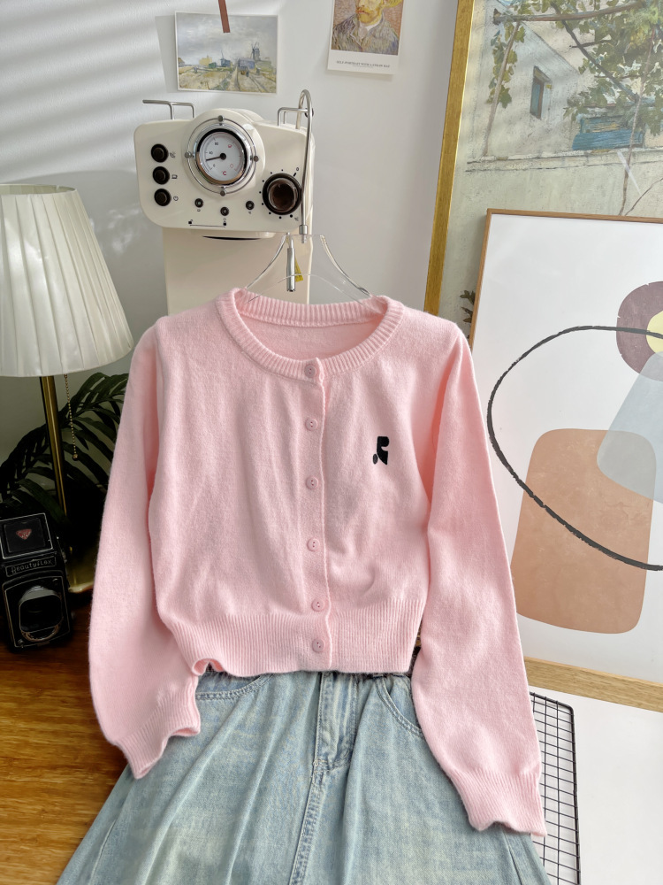 2024 년 가을 새 한국 동대문 자수 작은 라벨 짧은 단색 허리 긴 소매 니트 카디건 여성 4598