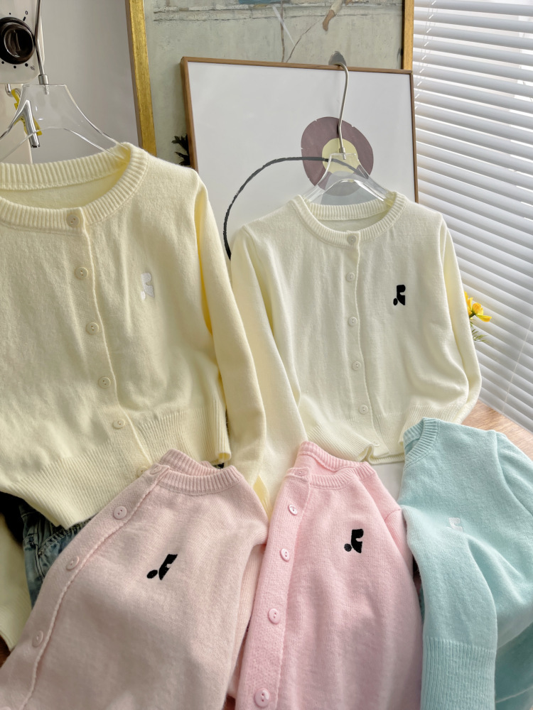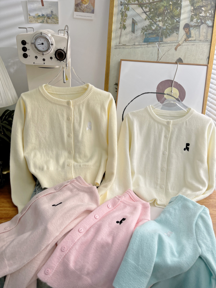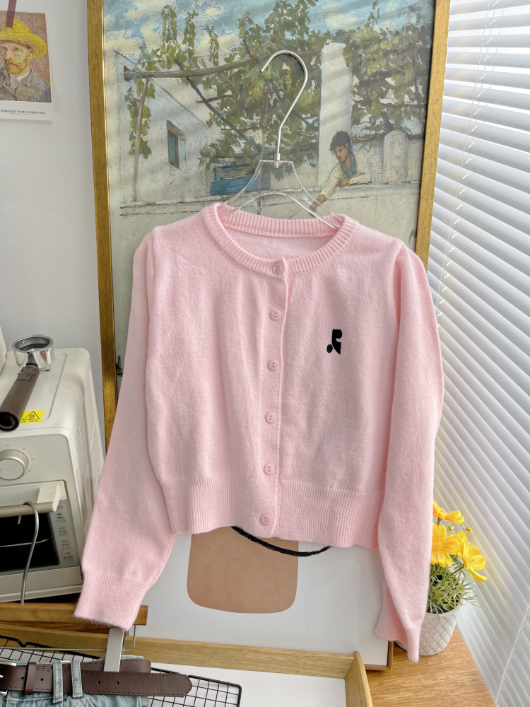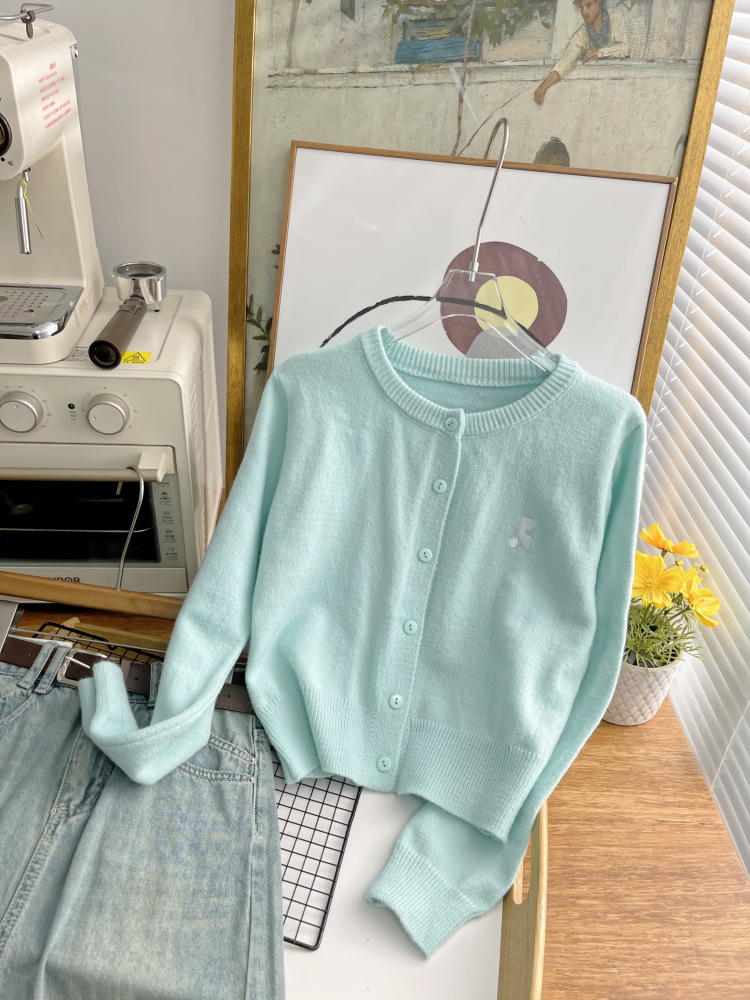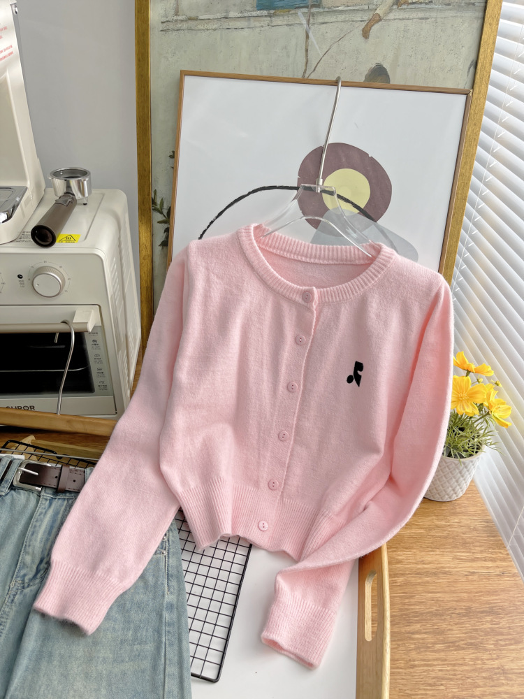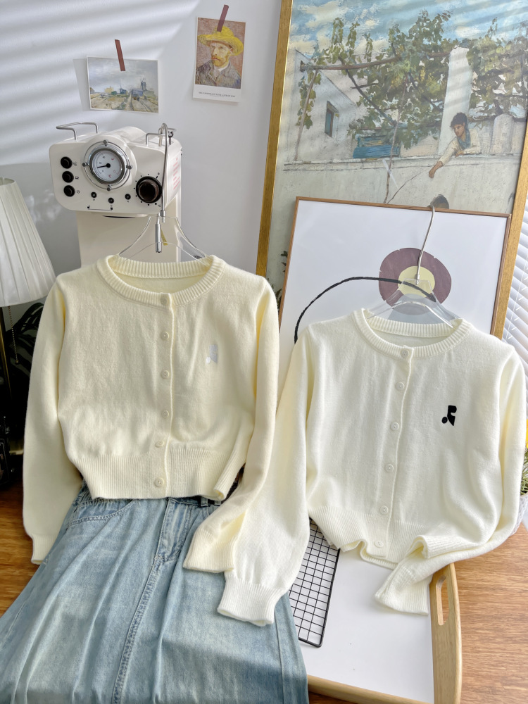 2024 년 가을 새 한국 동대문 자수 작은 라벨 짧은 단색 허리 긴 소매 니트 카디건 여성 4598