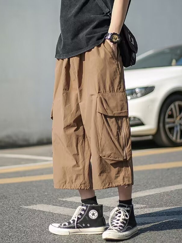 툴링 반바지 남성 랜턴 8 점 바지 느슨한 얇은 와이드 레그 일본 스타일 새로운 여름 빠른 건조 자른 캐주얼 바지