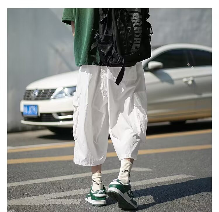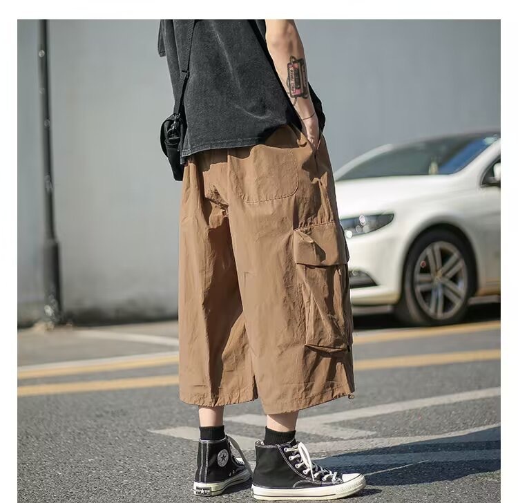 툴링 반바지 남성 랜턴 8 점 바지 느슨한 얇은 와이드 레그 일본 스타일 새로운 여름 빠른 건조 자른 캐주얼 바지스토어 가기