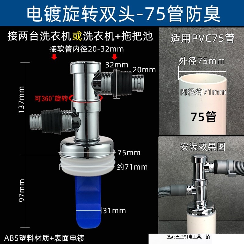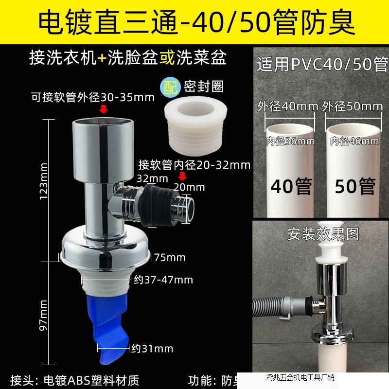 배수 파이프 3 헤드 바닥 배수 티 배수 세탁기 배수 파이프 바닥 배수 조인트 5075 탈취제 밀봉 링