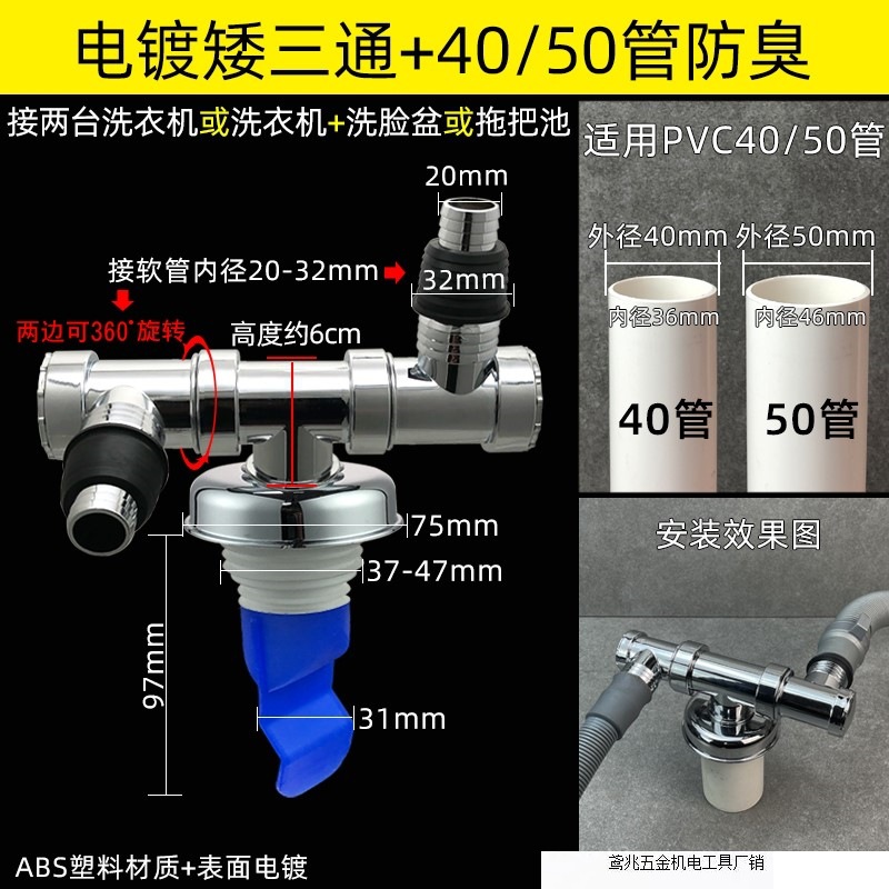 배수 파이프 3 헤드 바닥 배수 티 배수 세탁기 배수 파이프 바닥 배수 조인트 5075 탈취제 밀봉 링스토어 가기