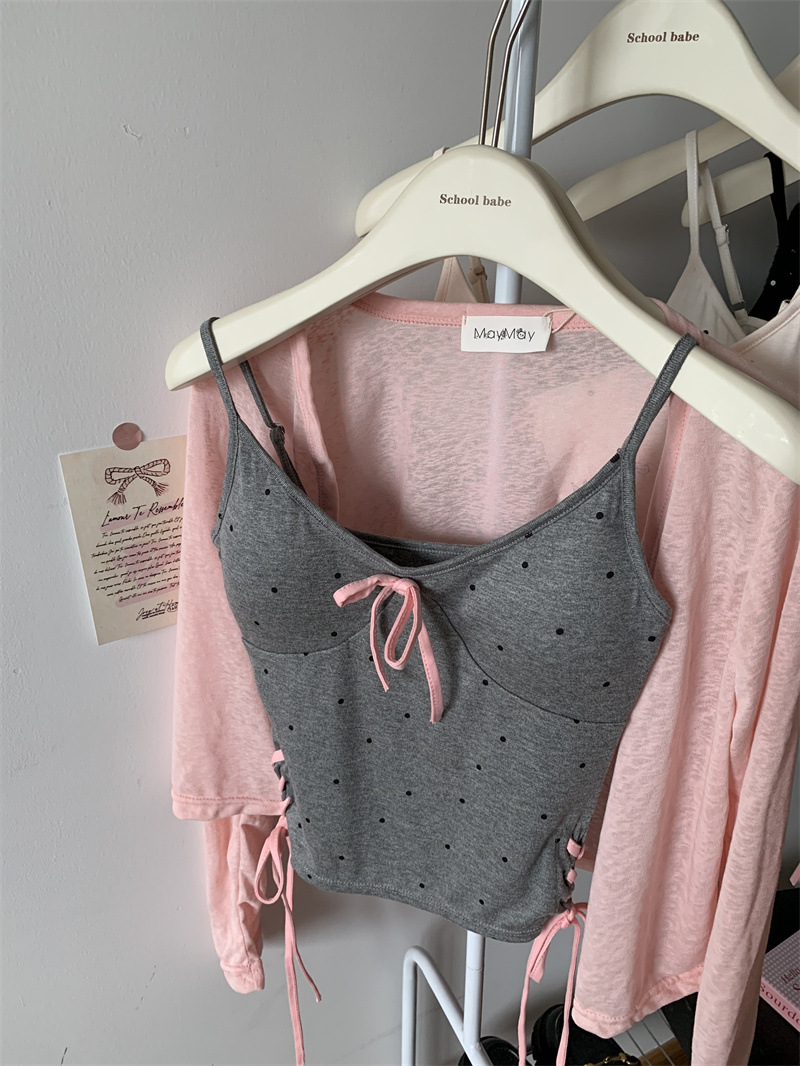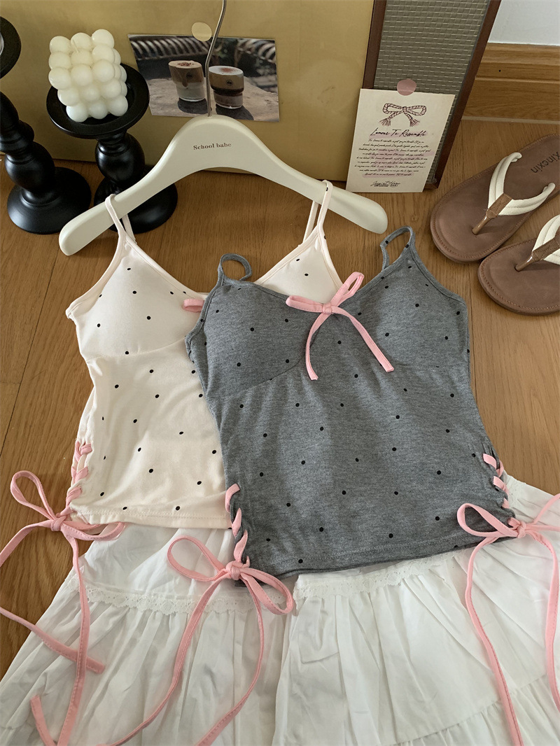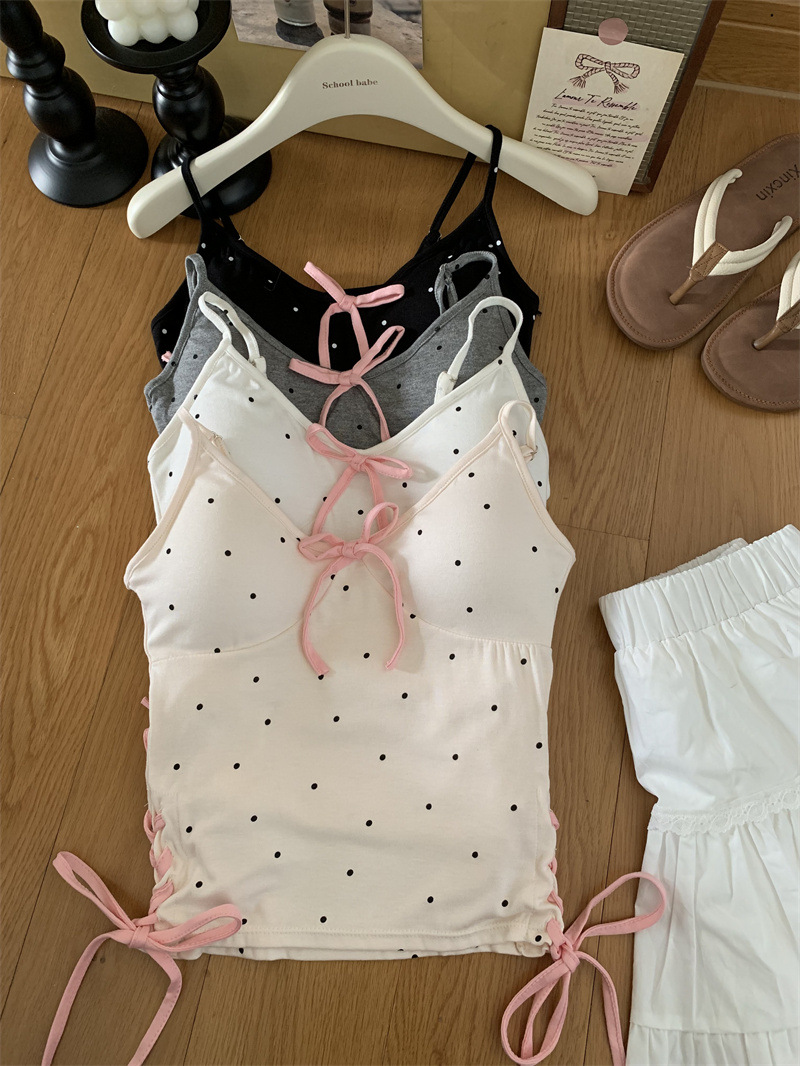 1063 # 레이온 디자인 활 순수한 바람 캐미솔 여성의 여름 새로운 프랑스 뜨거운 소녀 아름다운 뒤스토어 가기