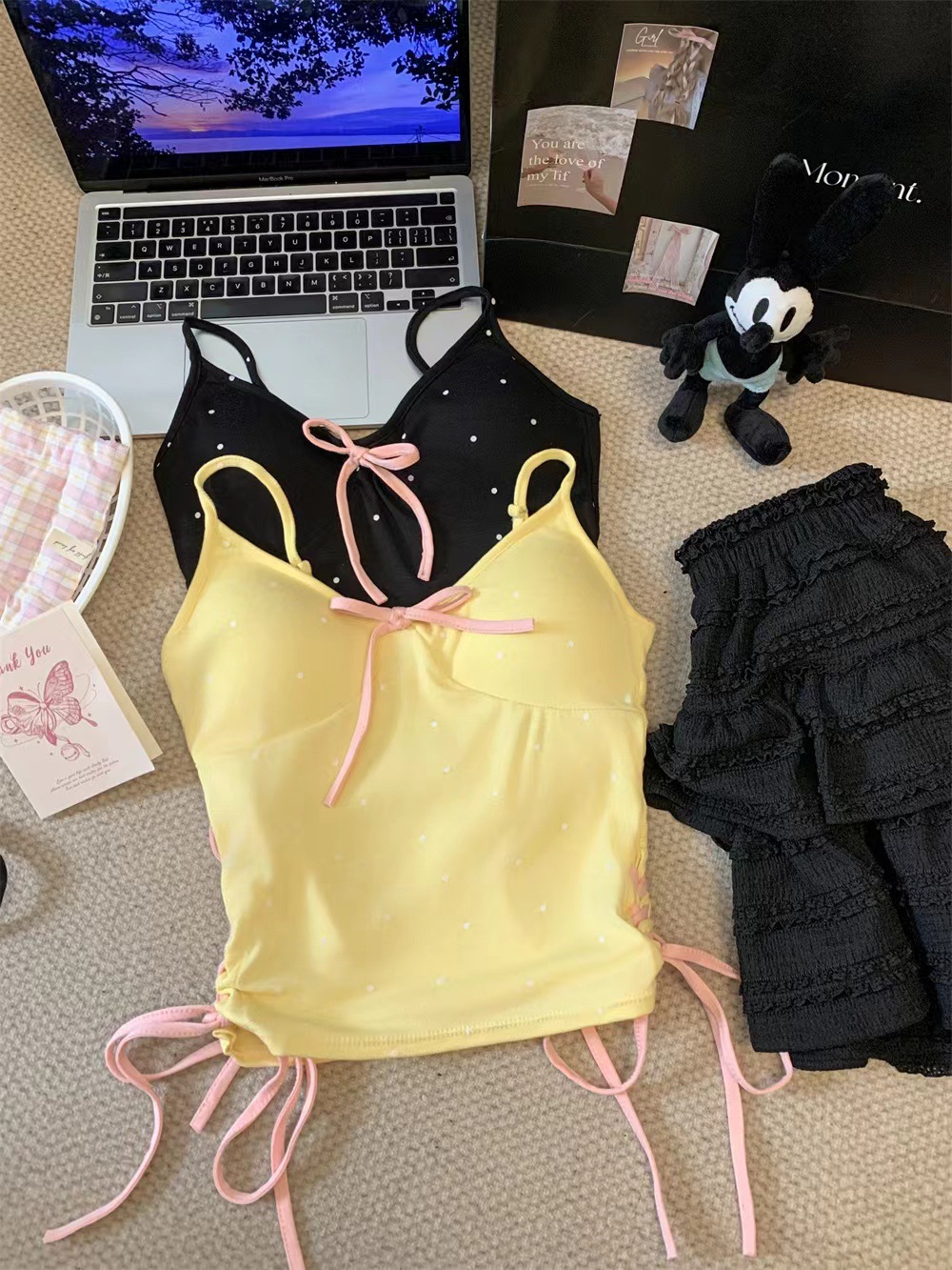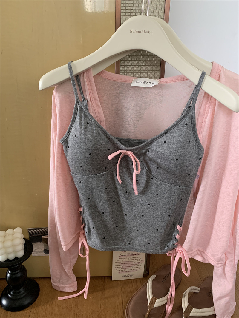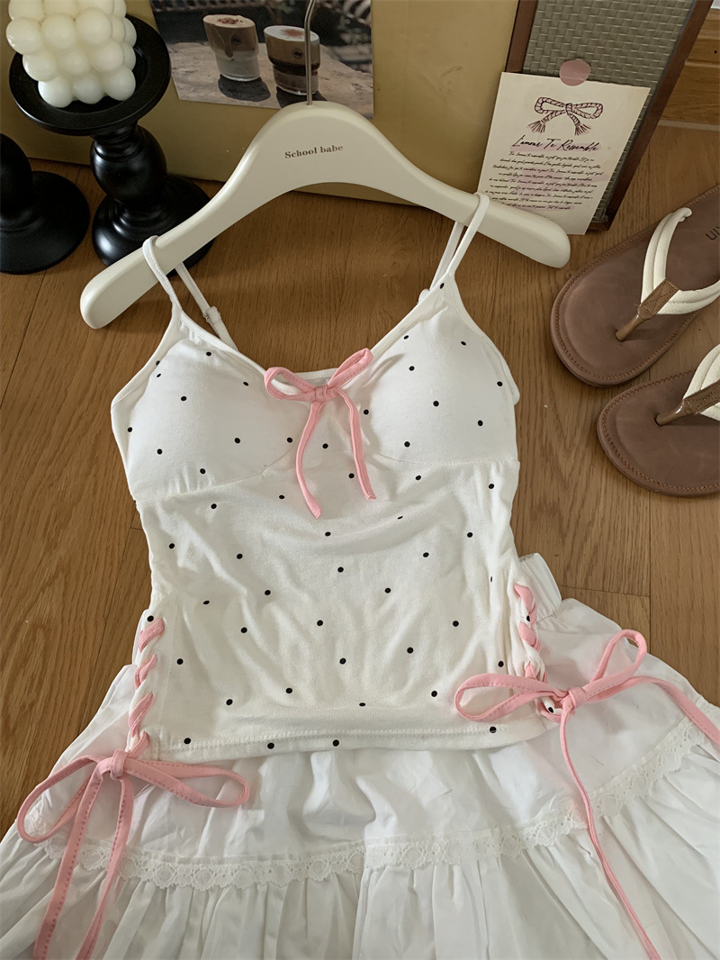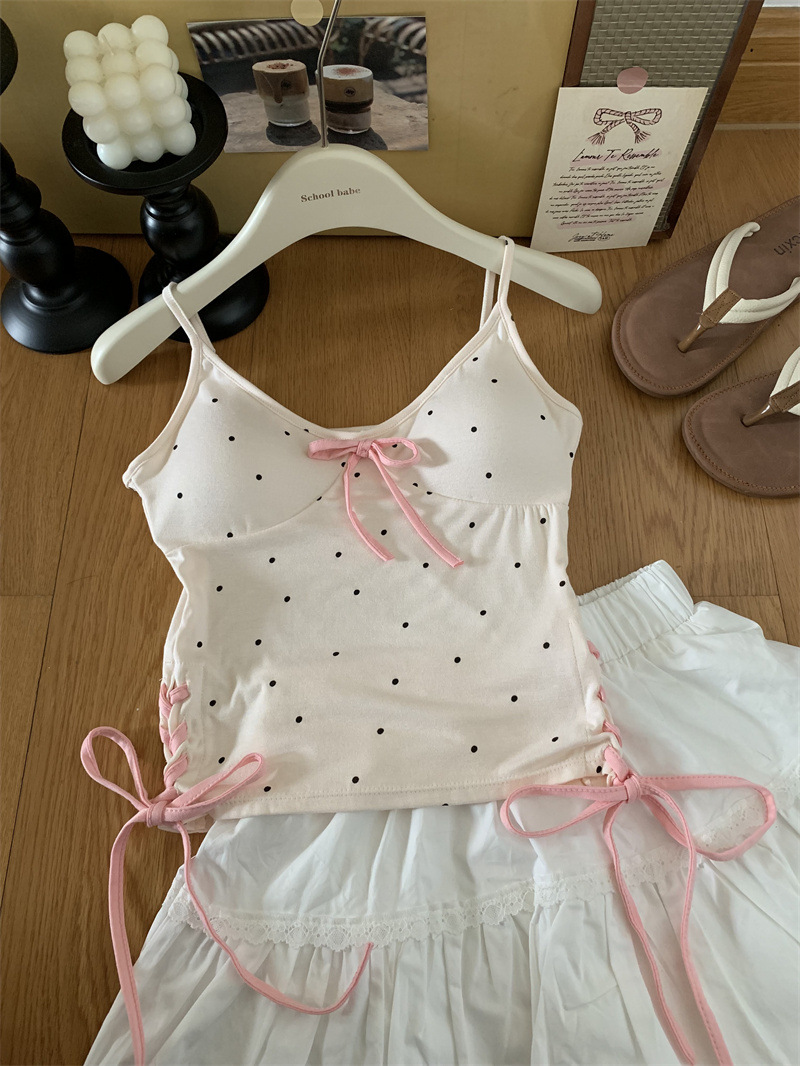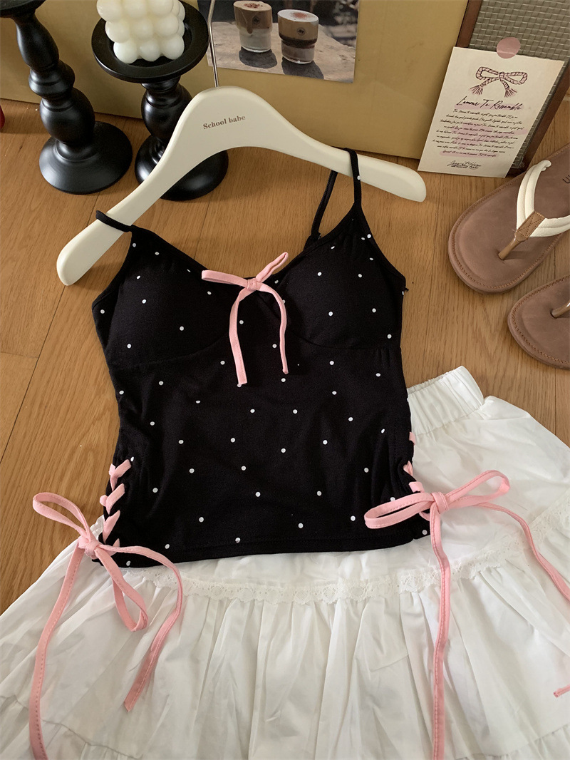 1063 # 레이온 디자인 활 순수한 바람 캐미솔 여성의 여름 새로운 프랑스 뜨거운 소녀 아름다운 뒤