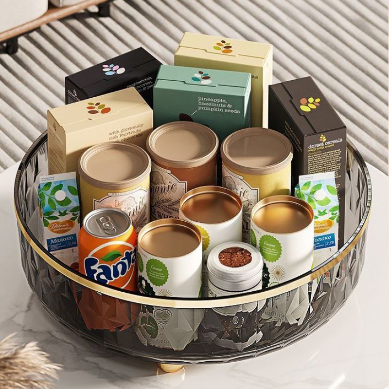 INS 바람 높은 색상 가치 과일 플레이트 거실 과일 플레이트 가정용 데스크탑 회전 저장 상자 투명 플레이트 회전 향신료 상자스토어 가기