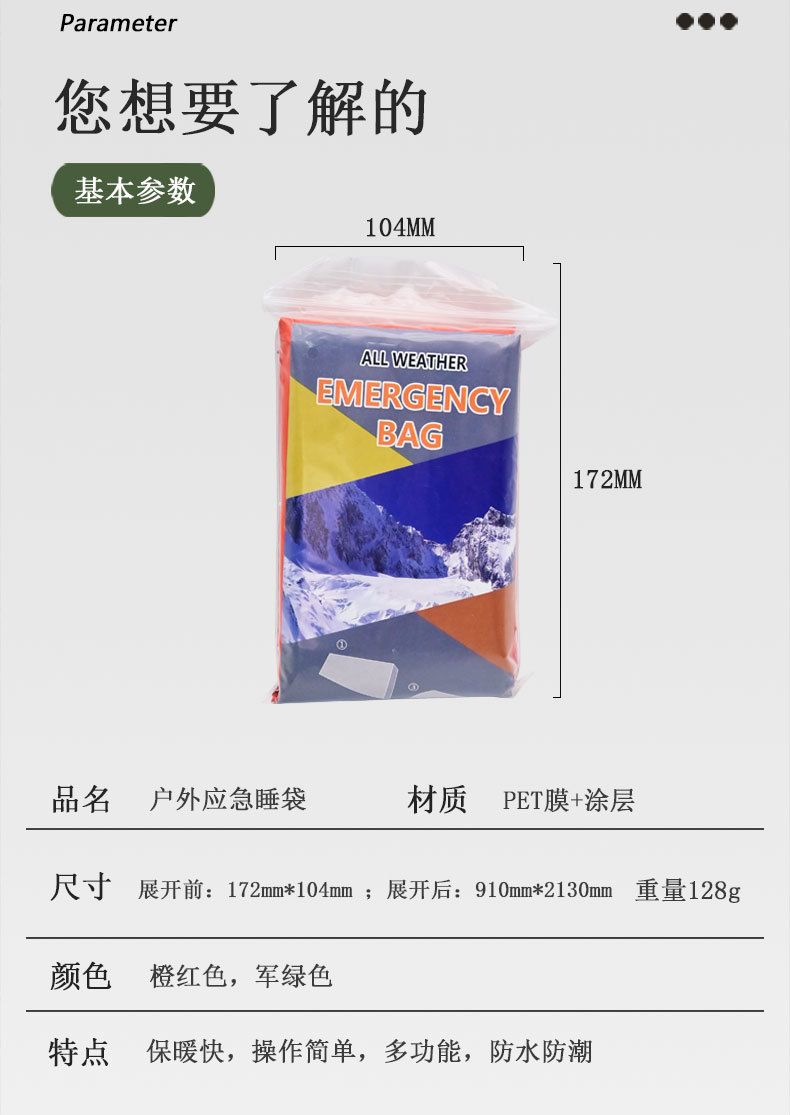 아마존 폭발 야외 캠핑 비상 슬리핑 백 PE 필름 생존 장비 필드 등산 비상 담요 텐트 비옷스토어 가기