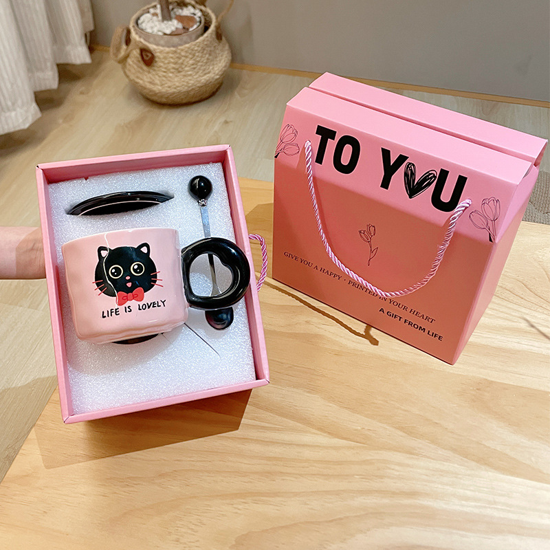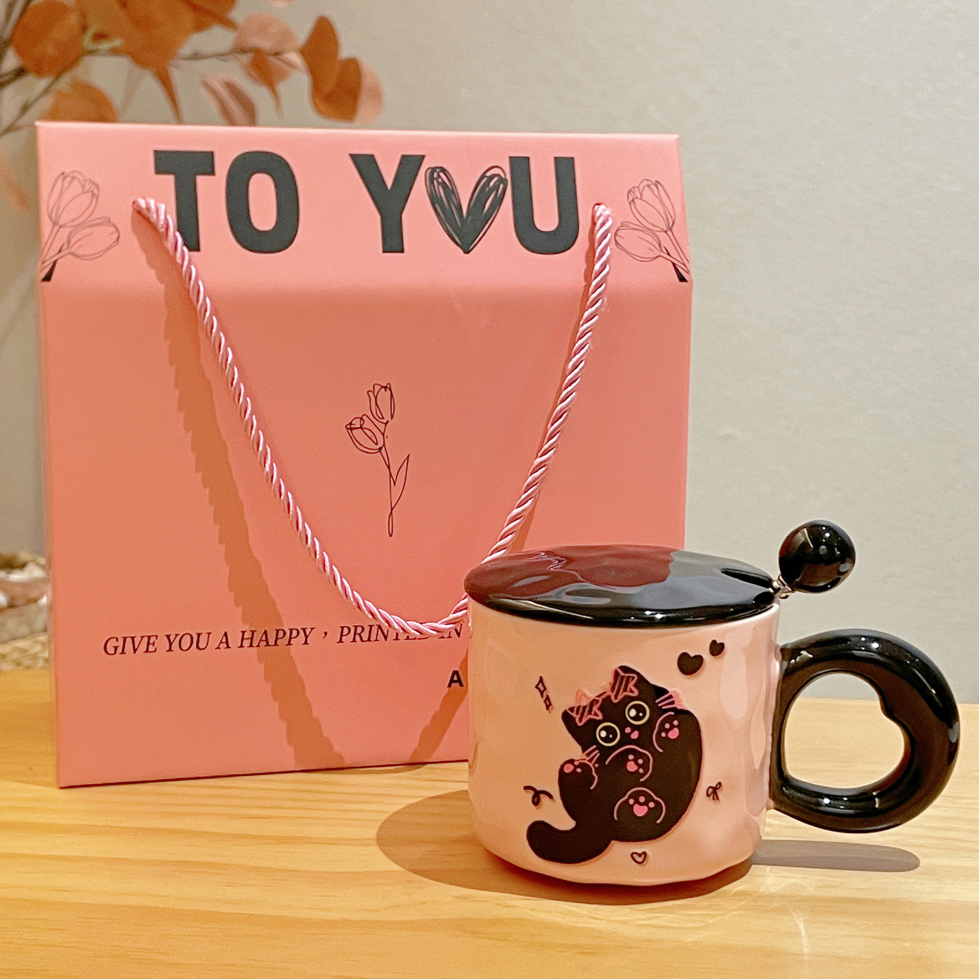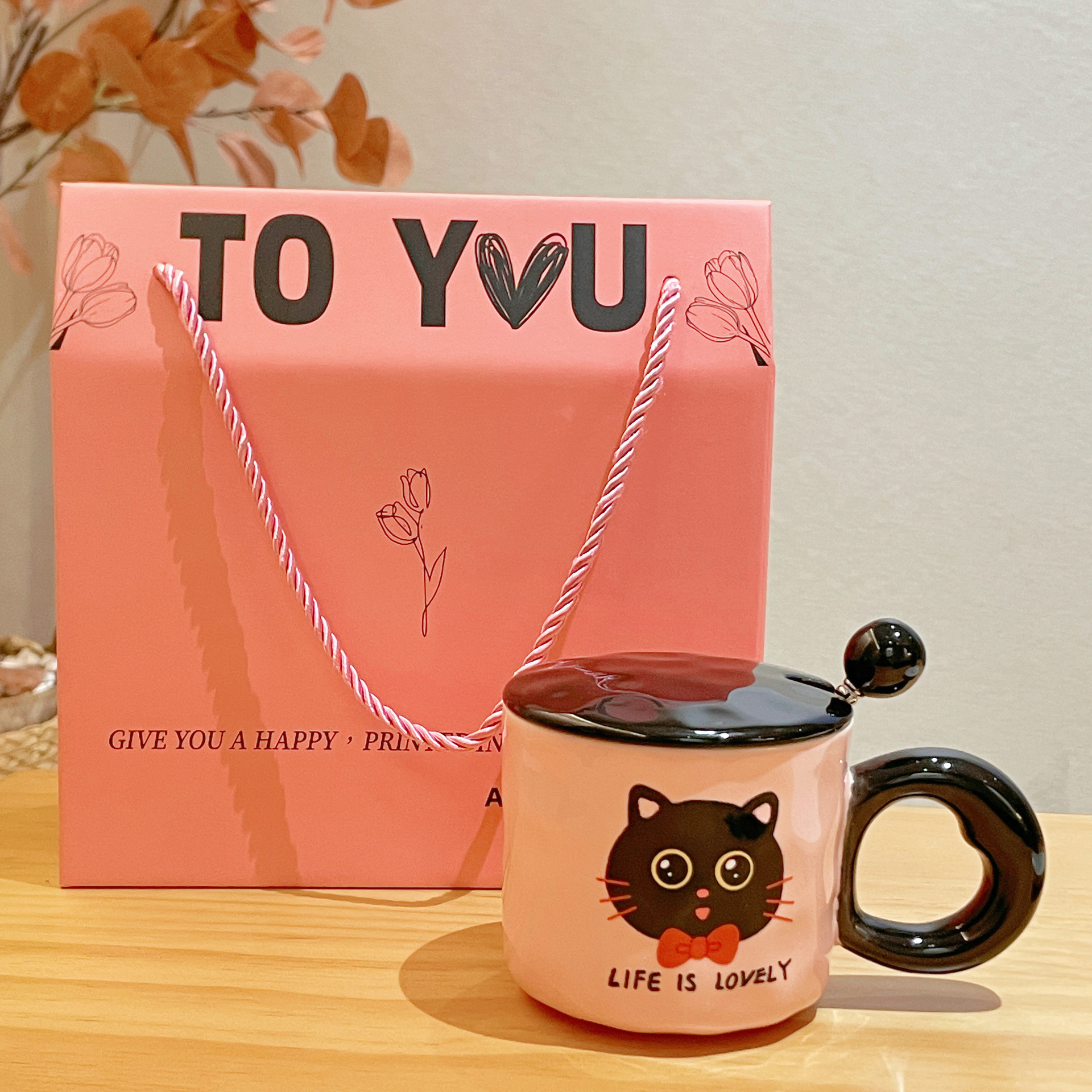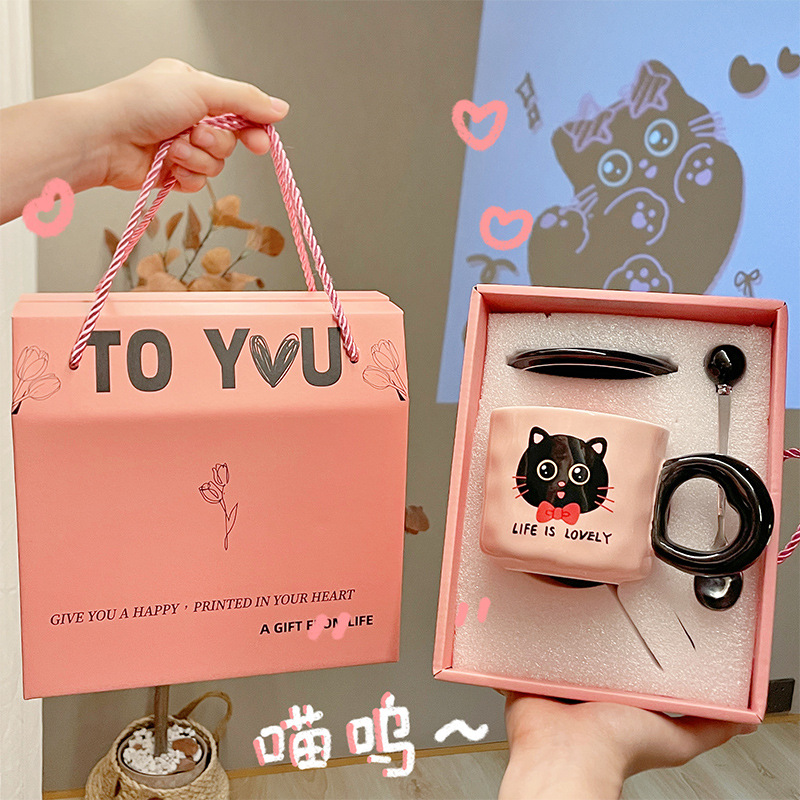 새 생일 선물 소녀 귀여운 고양이 컵 세라믹 머그잔 뚜껑 실용적인 손 선물 상자스토어 가기