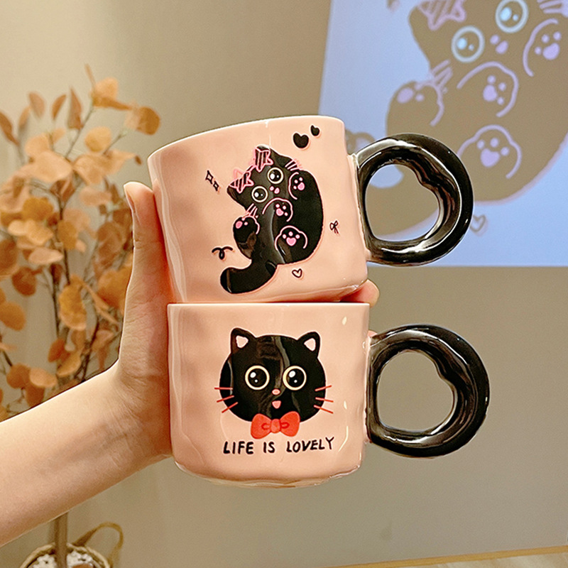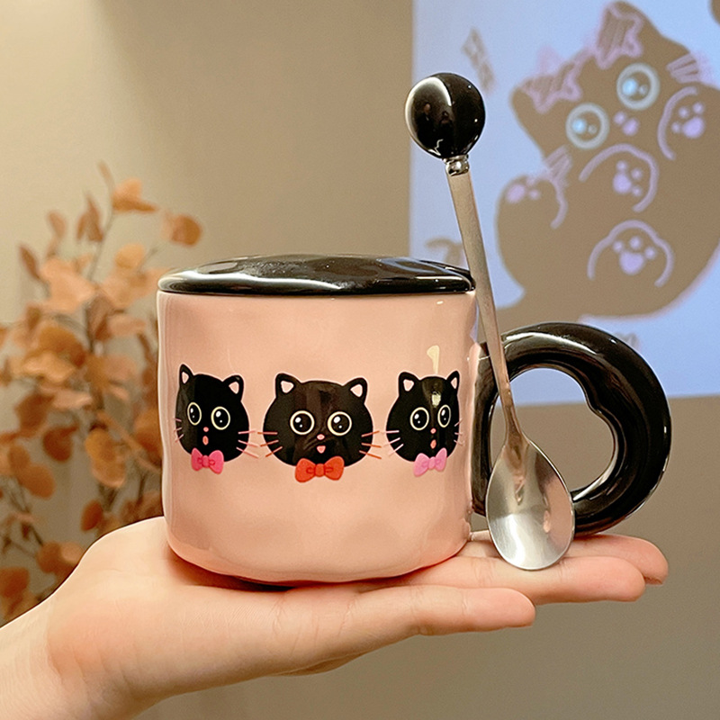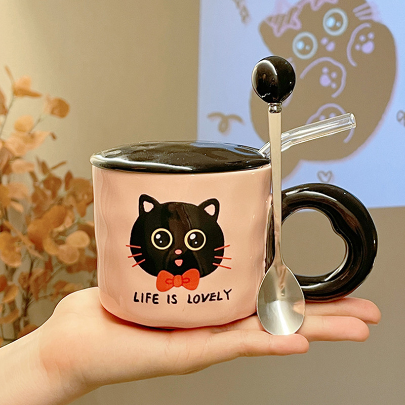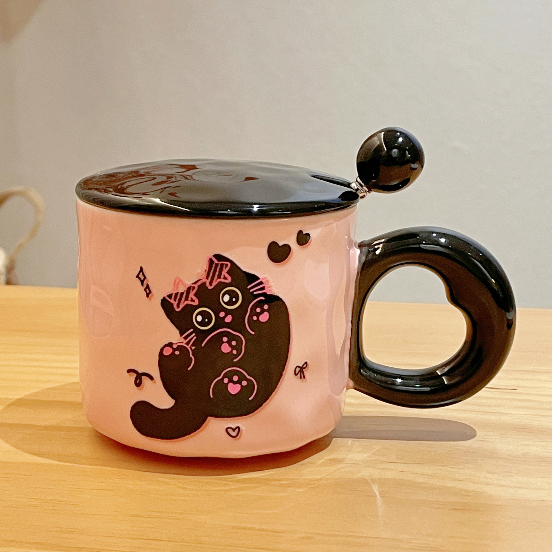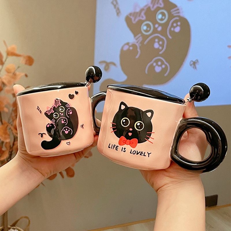 새 생일 선물 소녀 귀여운 고양이 컵 세라믹 머그잔 뚜껑 실용적인 손 선물 상자스토어 가기