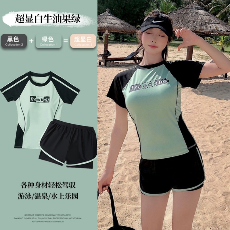 수영복 여성 스플릿 투피스 세트 보수적 인 작은 신선한 여름 휴가 슬리밍 벨리 커버 온천 수영복 학생 수영 교실