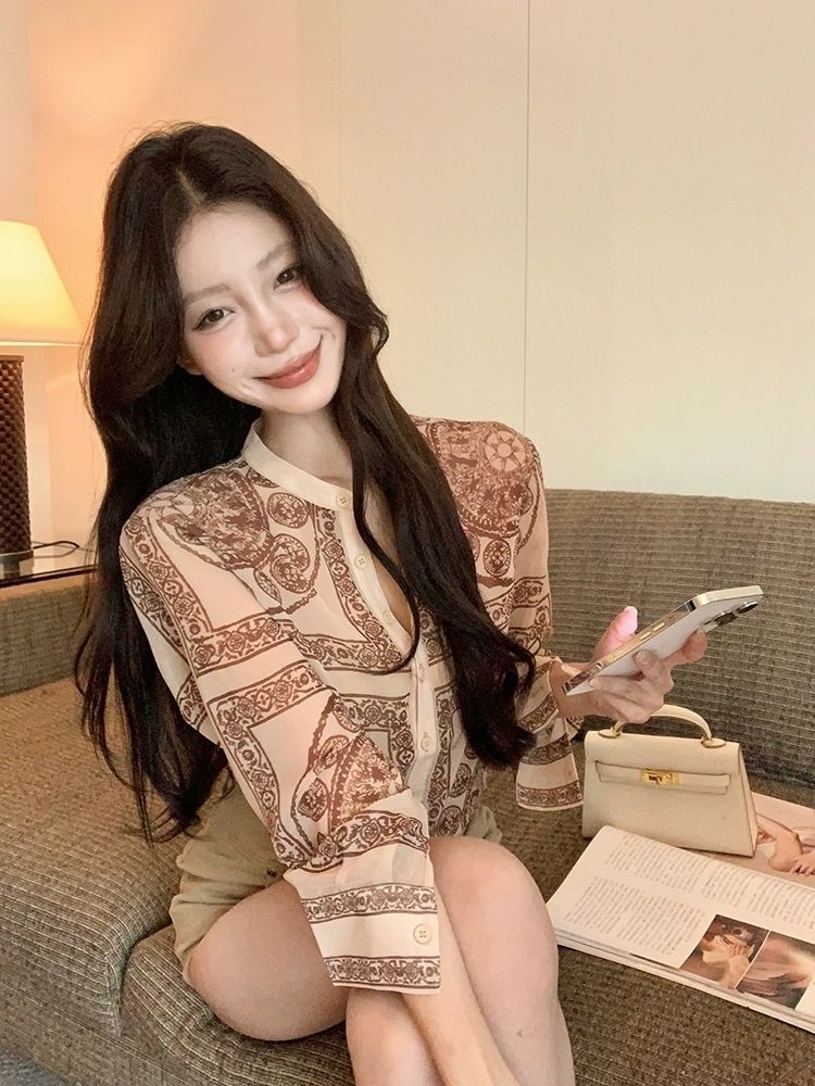 여성을위한 편안한 복고풍 연예인 느슨한 기질 쉬폰 셔츠 여름 패션 얇은 태양 보호 재킷 긴팔 탑스토어 가기
