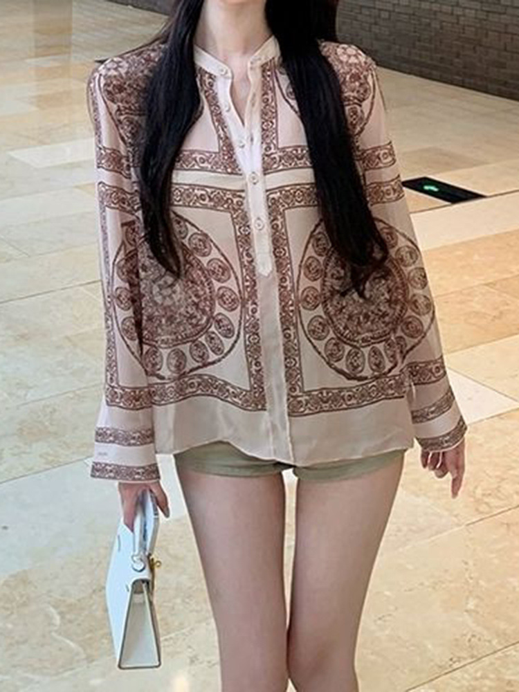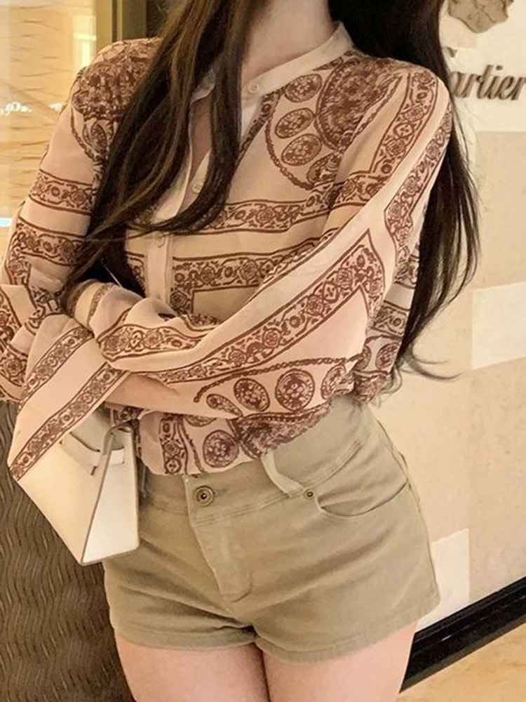 여성을위한 편안한 복고풍 연예인 느슨한 기질 쉬폰 셔츠 여름 패션 얇은 태양 보호 재킷 긴팔 탑