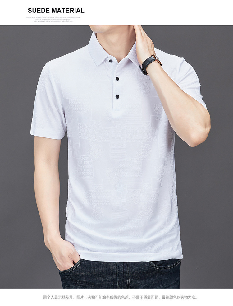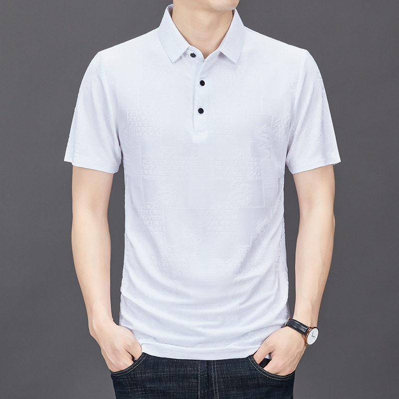 여름 아이스 실크 반팔 티셔츠 남자 2024 뉴 자카드 옷깃 폴로 셔츠 젊고 중년 캐주얼 얇은 티셔츠
