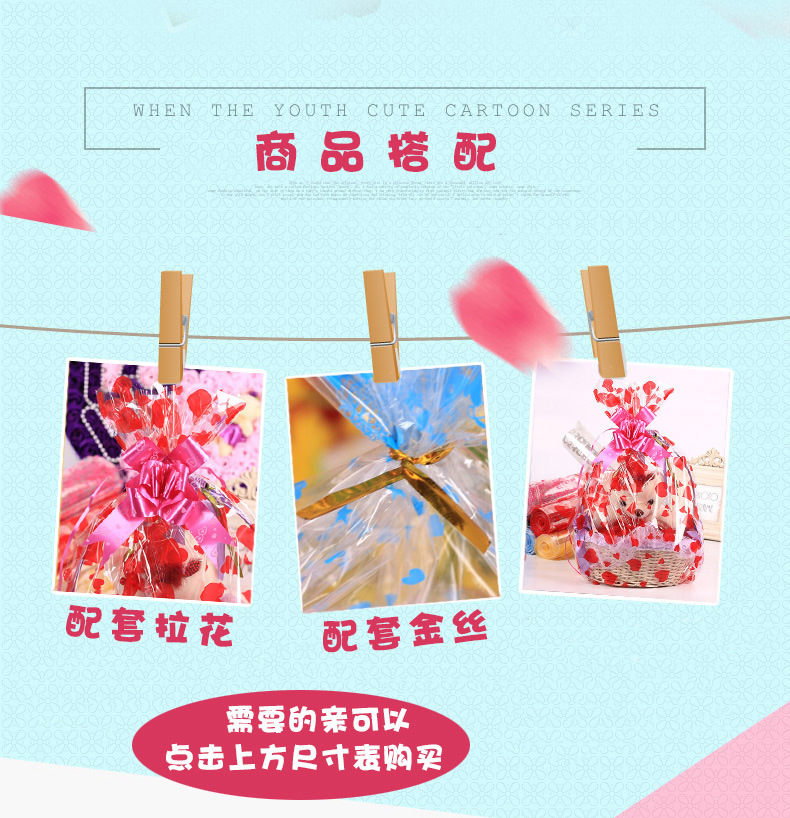 • 빨간색 작은 복숭아 하트, PP, 70* 100cm (100개) 매칭 와이어 타이
