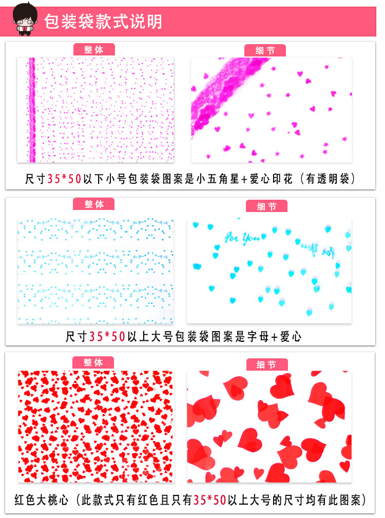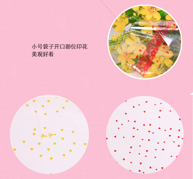 • 빨간색 작은 복숭아 하트, PP, 60* 75cm (100개) 매칭 와이어 타이