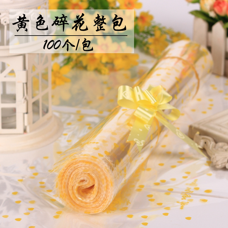 • 노란색 작은 복숭아 하트, PP, 60* 90cm (100 개) 매칭 와이어 타이