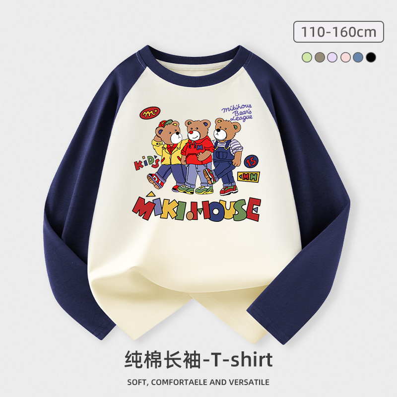 가을 패션을위한 어린이 긴팔 티셔츠 동물 만화 봄과 가을 중간 및 대형 아동복 여성용 크루 넥 순면 베이스 셔츠