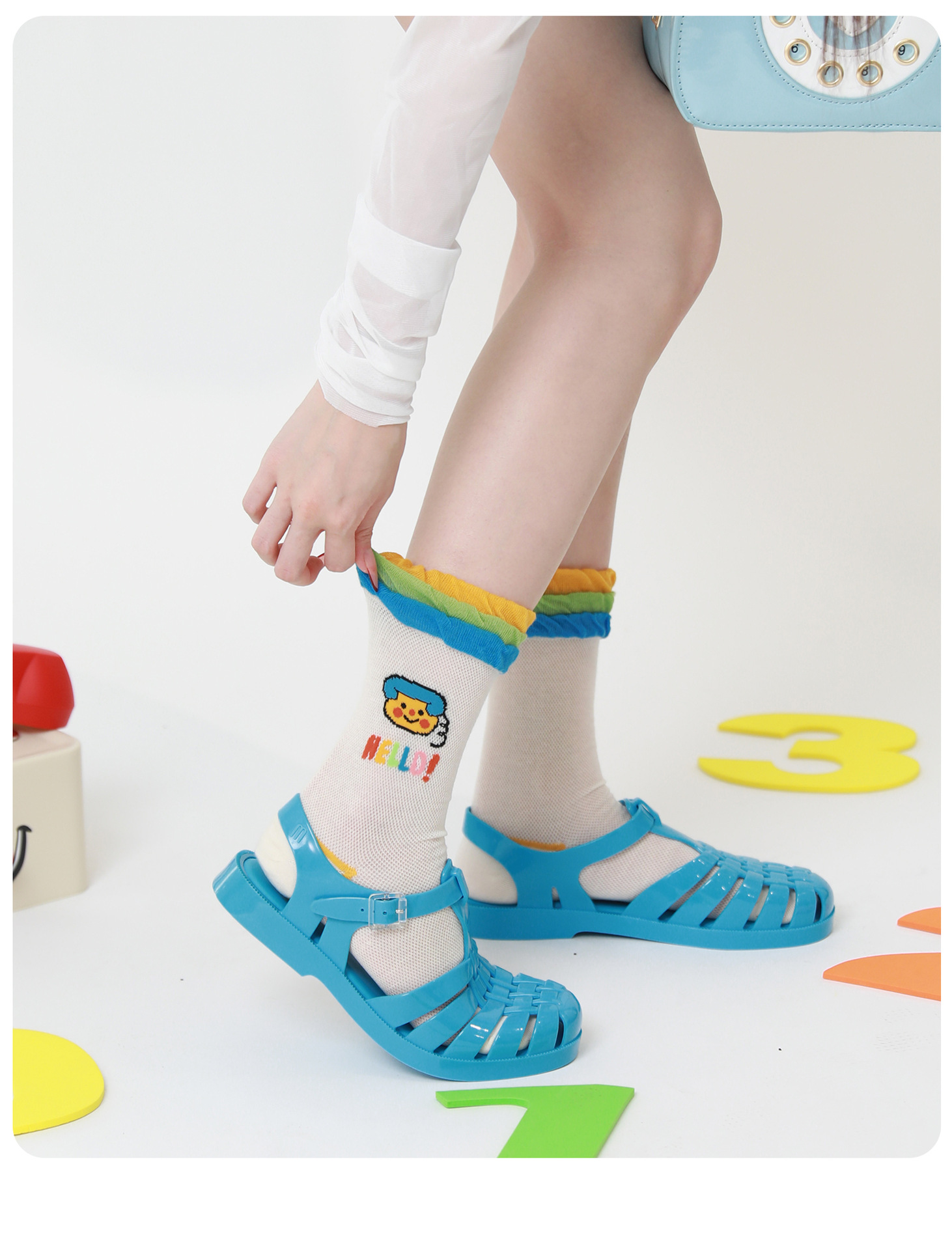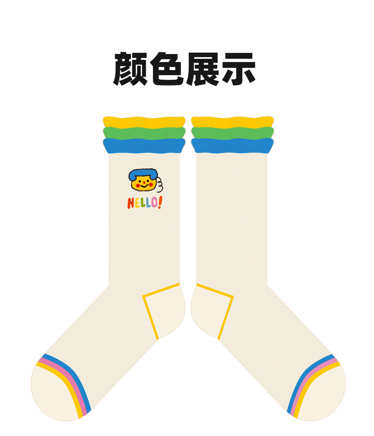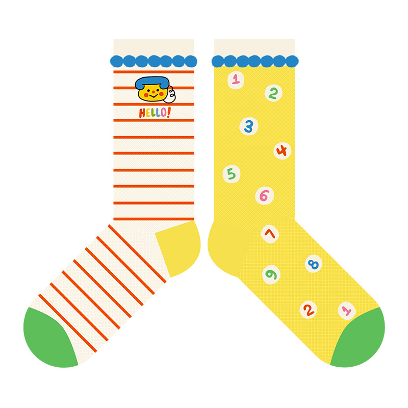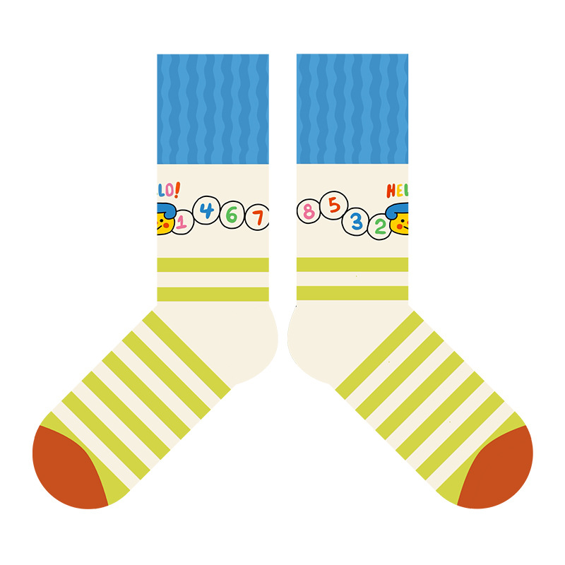 여름 새로운 컬러 도파민 조밀 양말 여성 통기성 유리 실크 귀여운 만화 줄무늬 중간 길이 양말 Zhuji Hosiery