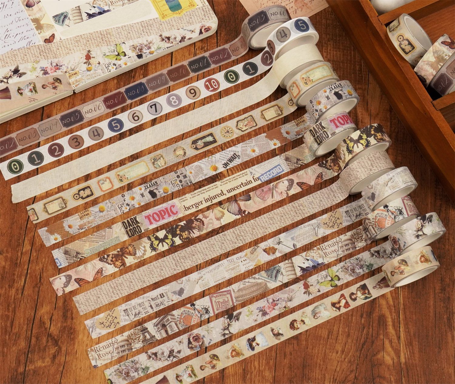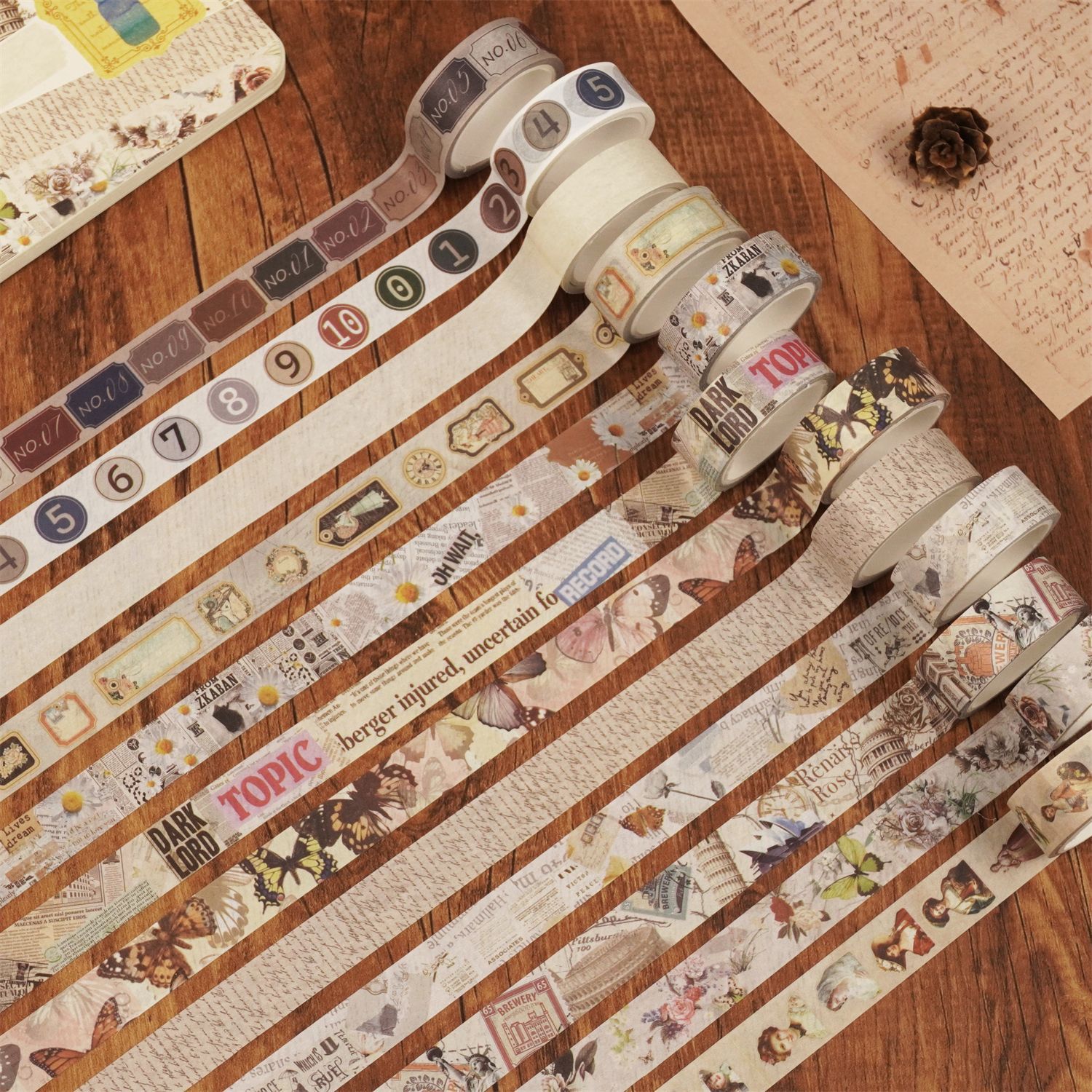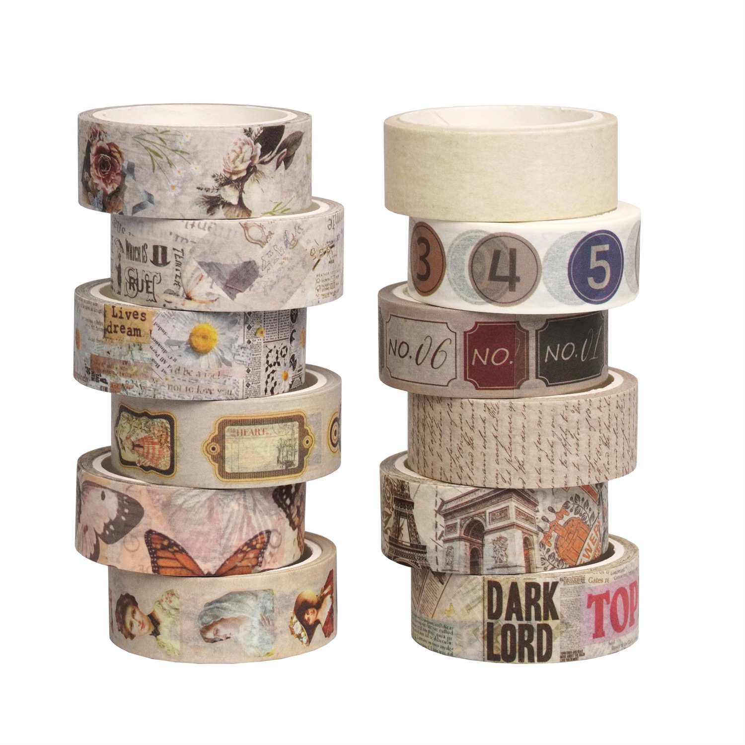 아마존 소스 국경 도매 복고풍 신문 12 롤 및 종이 테이프 유럽과 미국의 바람 DIY 장식 손 계정 테이프스토어 가기