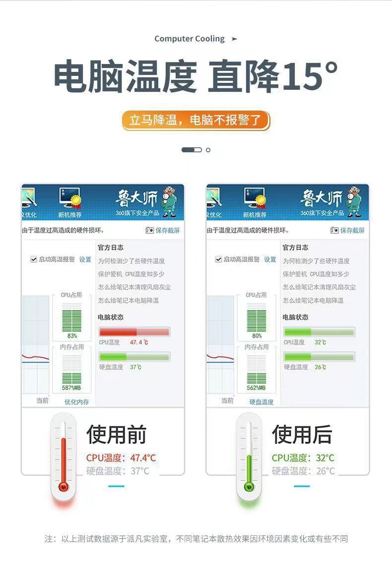 • 검정색 [ABS 플라스틱 모델] 보이지 않는 접이식, 휴대 가능, 크고 효율적인 방열 및 조절 가능