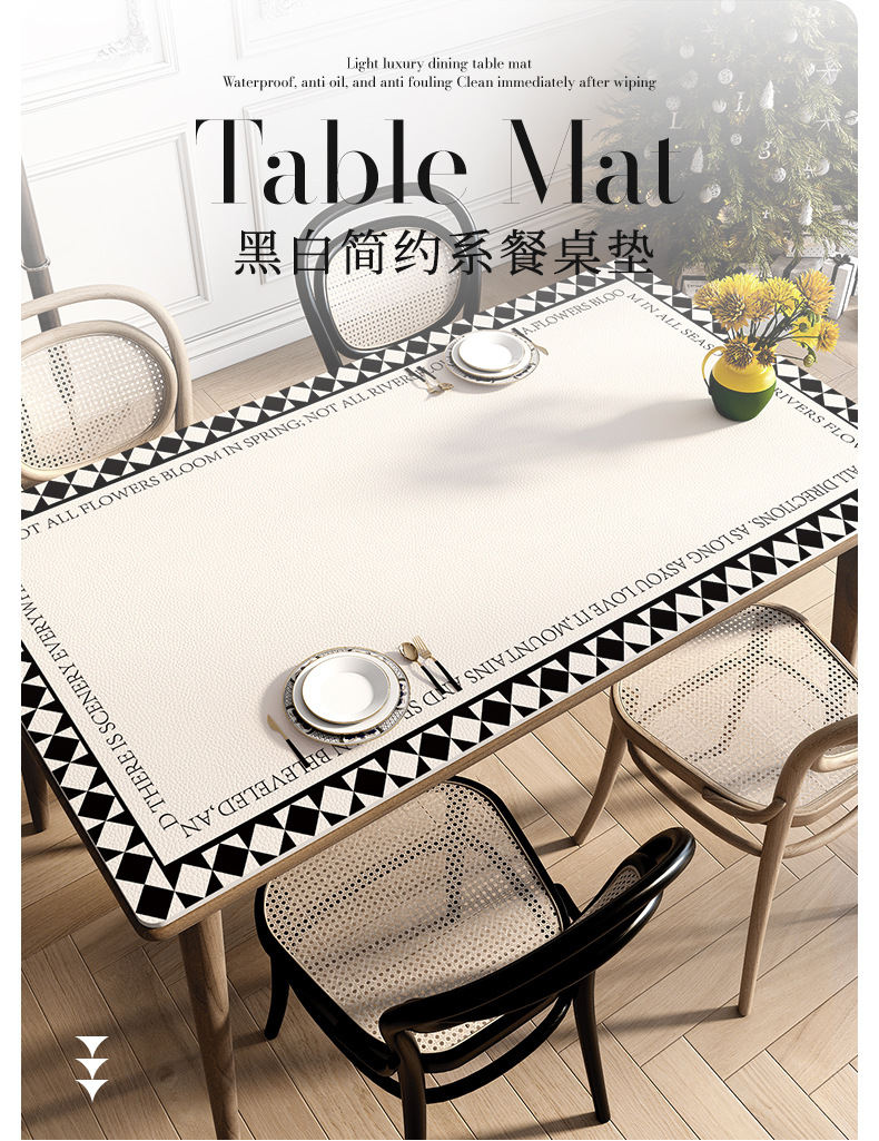 흑백 빛 고급 고급 테이블 매트 내유성 방수 방화 방지 비 세척 커피 테이블 매트 식탁 매트 직사각형 가죽 테이블 매트스토어 가기