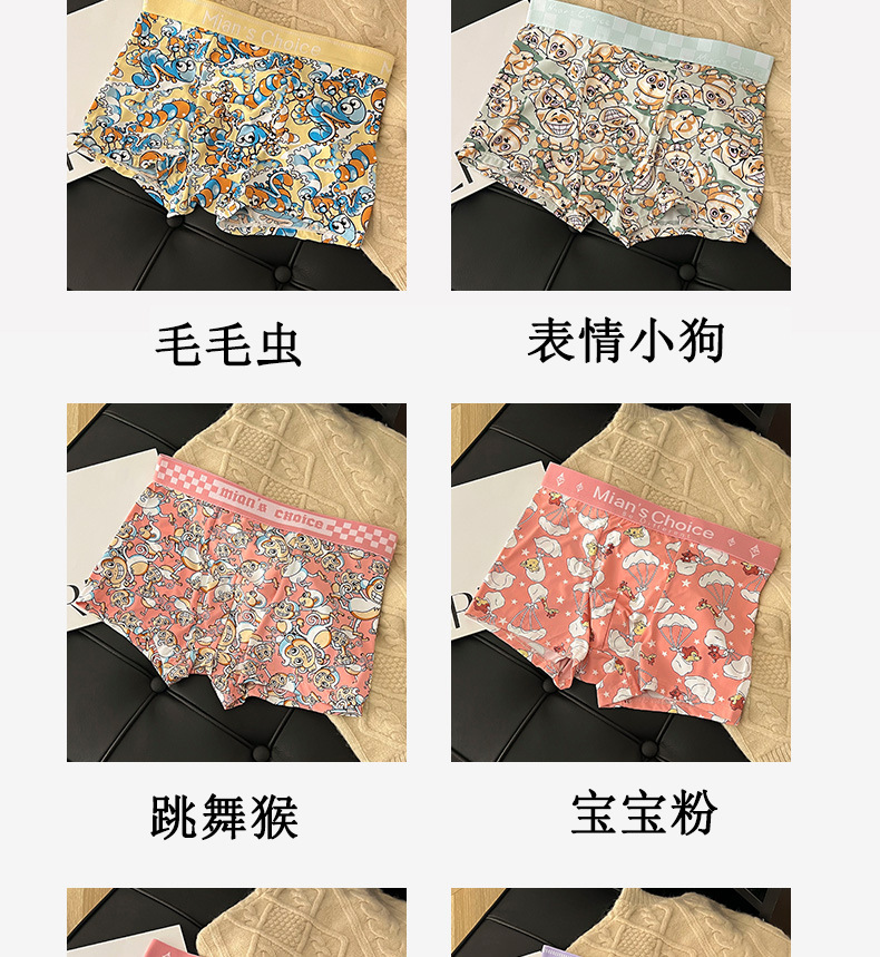 섹시한 만화 귀여운 남자 속옷 아이스 실크 여름 복서 항균 추적없는 플러스 사이즈 복서 통기성 얇은 바지스토어 가기