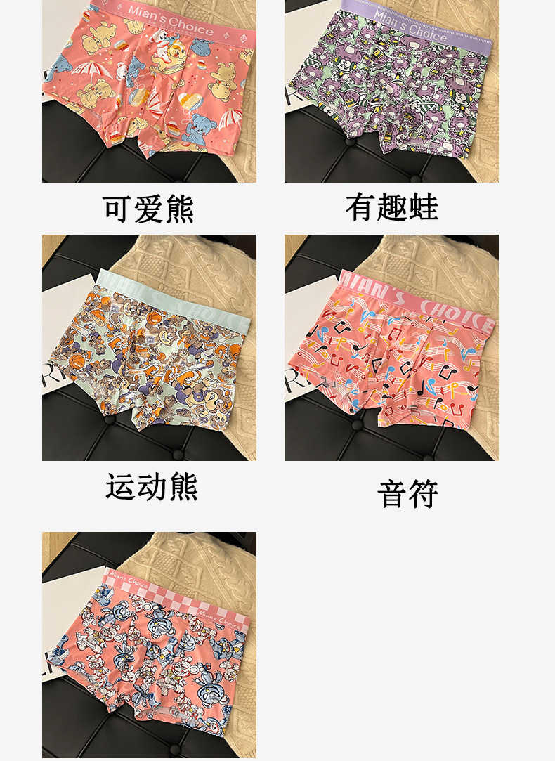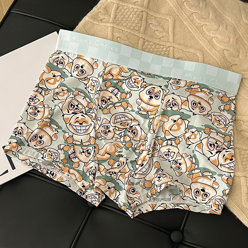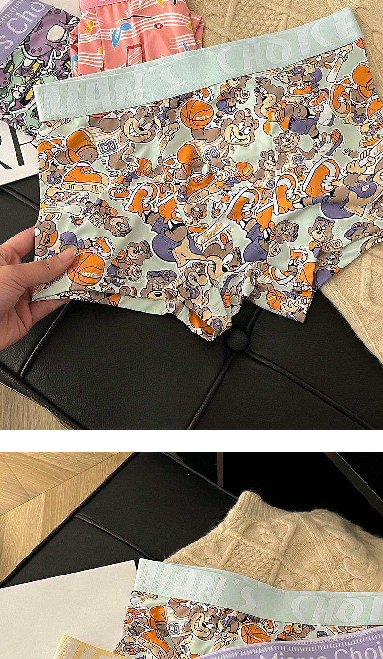 섹시한 만화 귀여운 남자 속옷 아이스 실크 여름 복서 항균 추적없는 플러스 사이즈 복서 통기성 얇은 바지