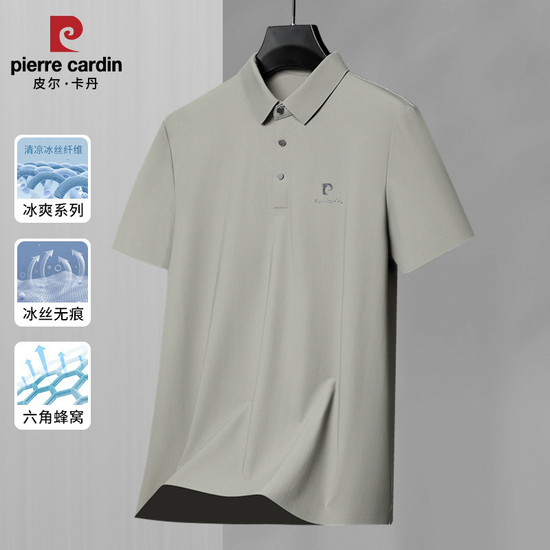 皮尔卡丹新款男士夏季高弹力凉感T恤亲肤透气中年休闲男装上衣潮