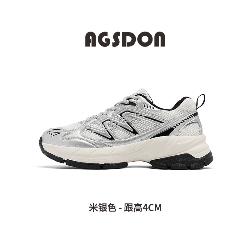 오구시뎅 실버 여성 운동화 2026년 봄 신상 레트로 두꺼운 밑창 경량 캐주얼 등산화 아빠 신발스토어 가기