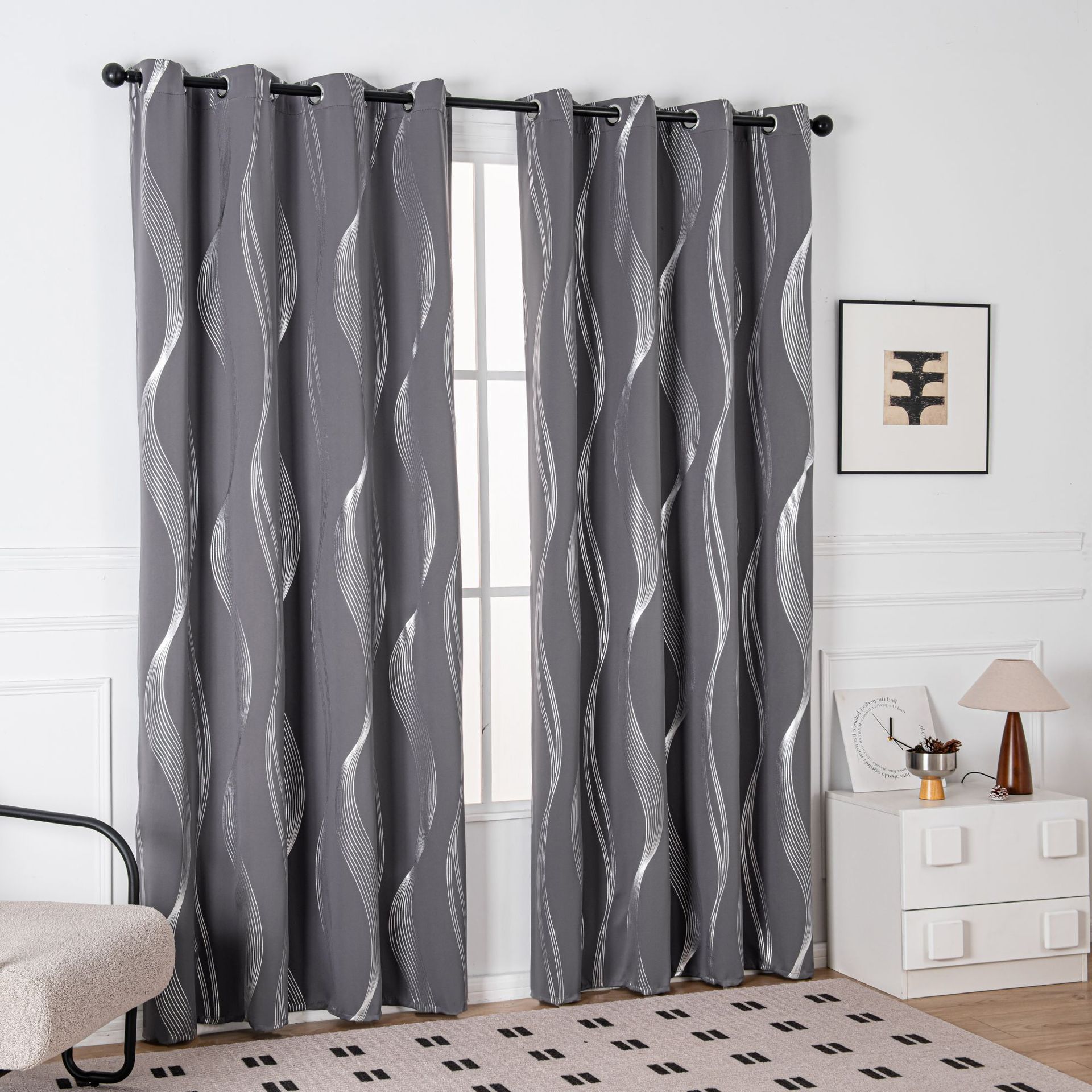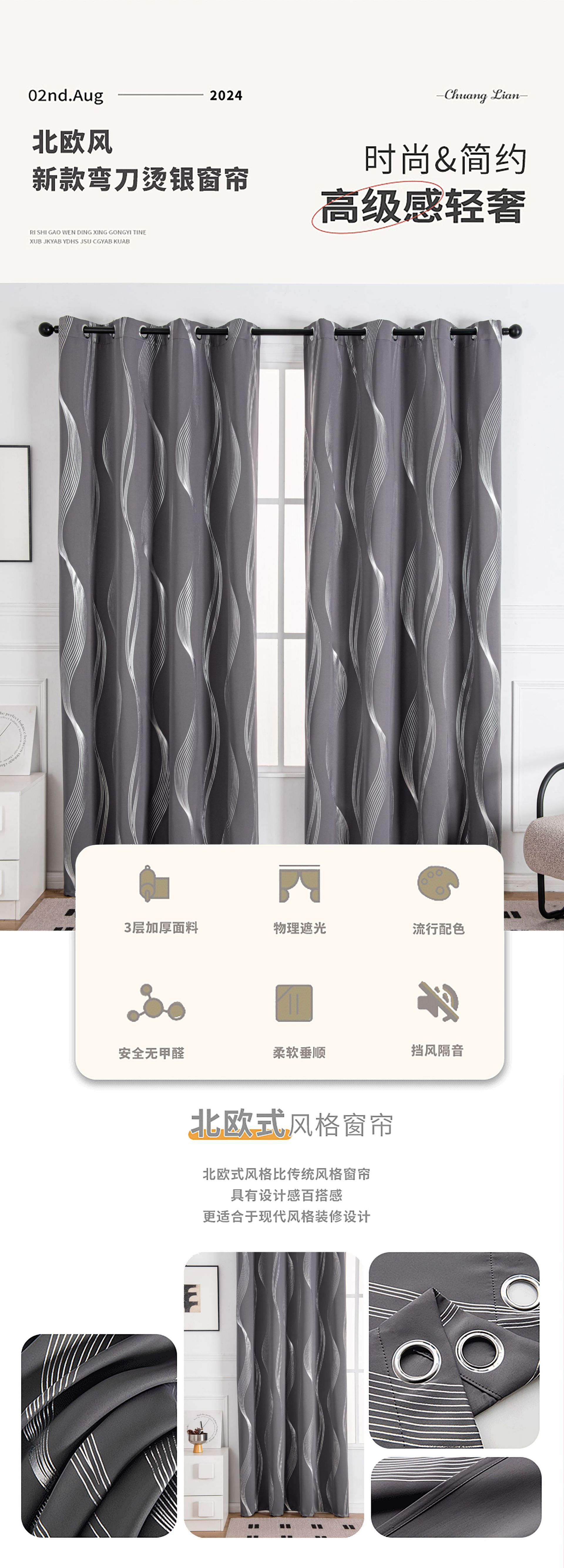 대외 무역 국경 아마존 단색 고정밀 웨이브 라인 핫 실버 커튼 마감 선 스크린 단열 그늘 천스토어 가기