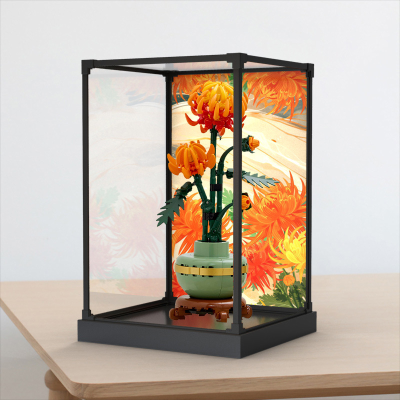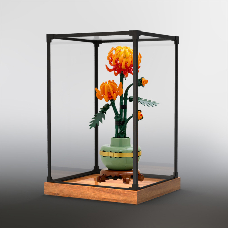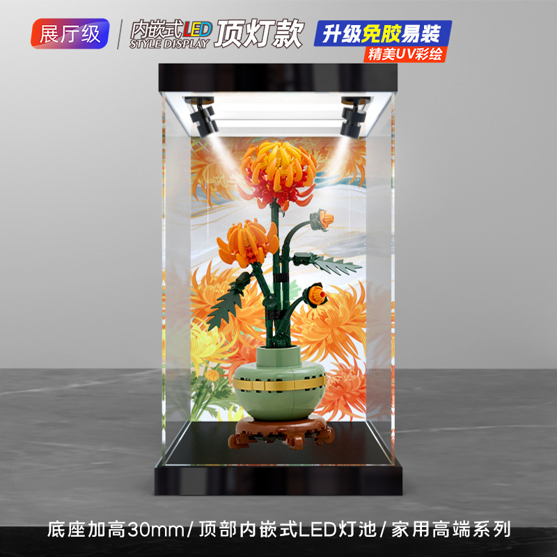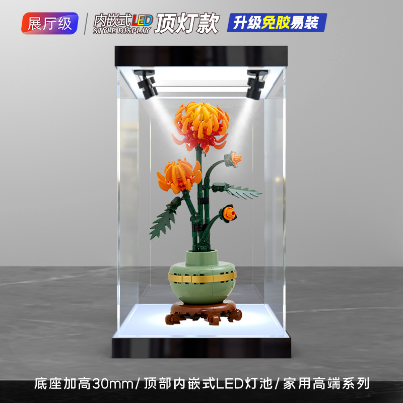 합금 프레임 통합 먼지 커버 아크릴 디스플레이 상자 레고 10368 금 국화 블록 모델스토어 가기