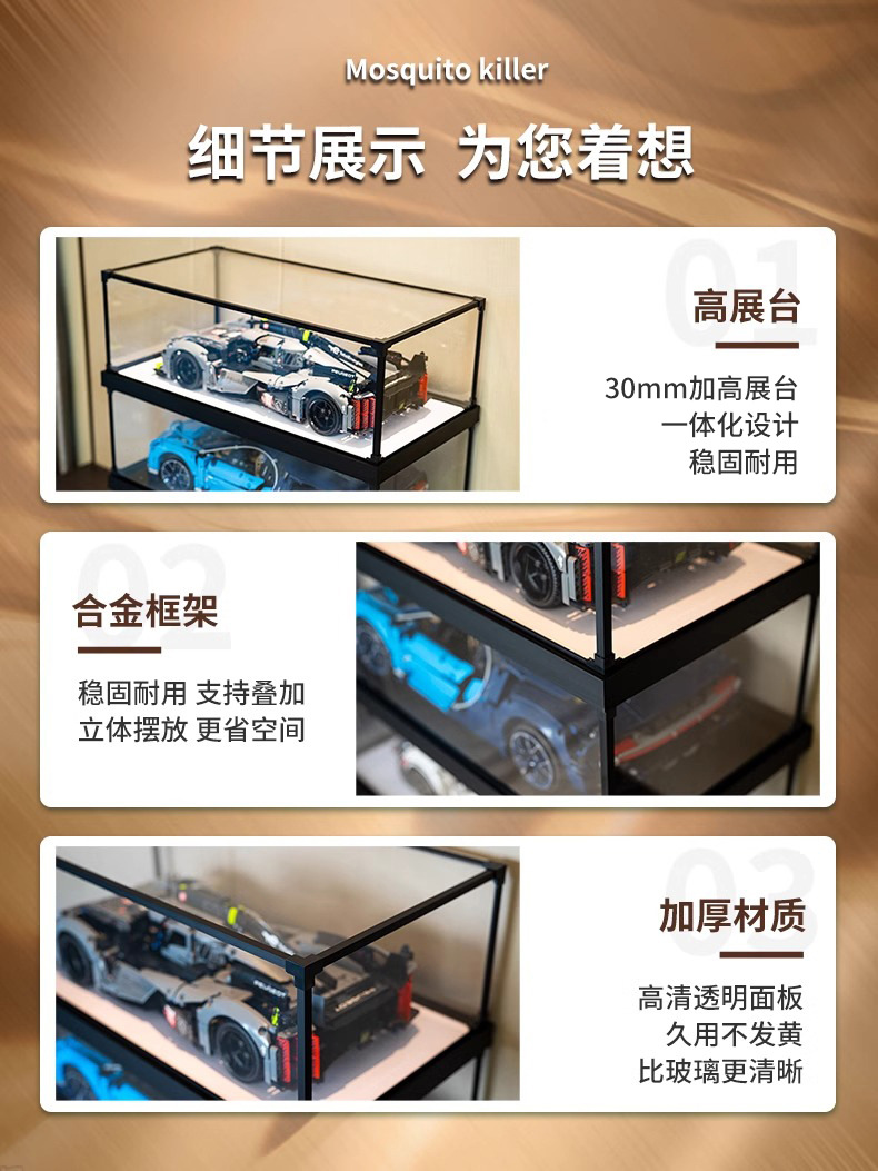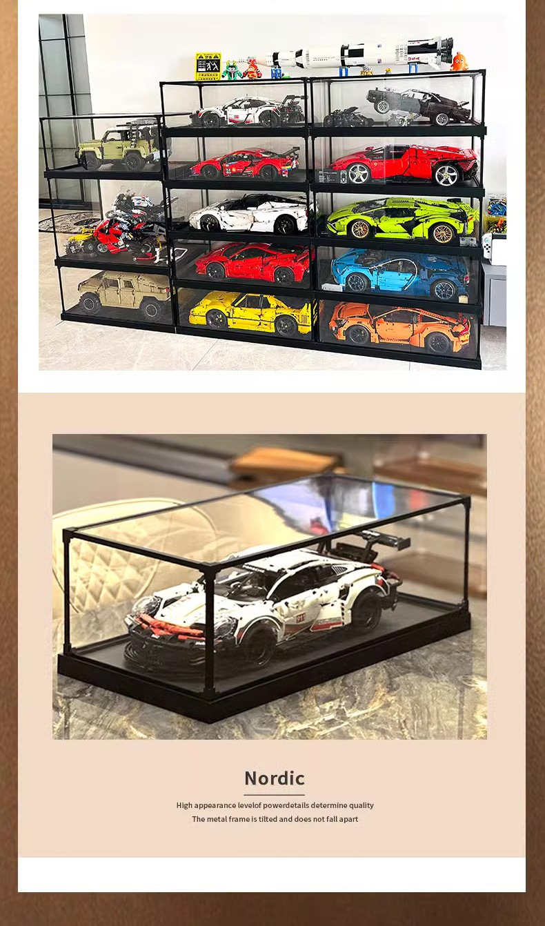 합금 프레임 통합 먼지 커버 아크릴 디스플레이 상자 레고 10368 금 국화 블록 모델