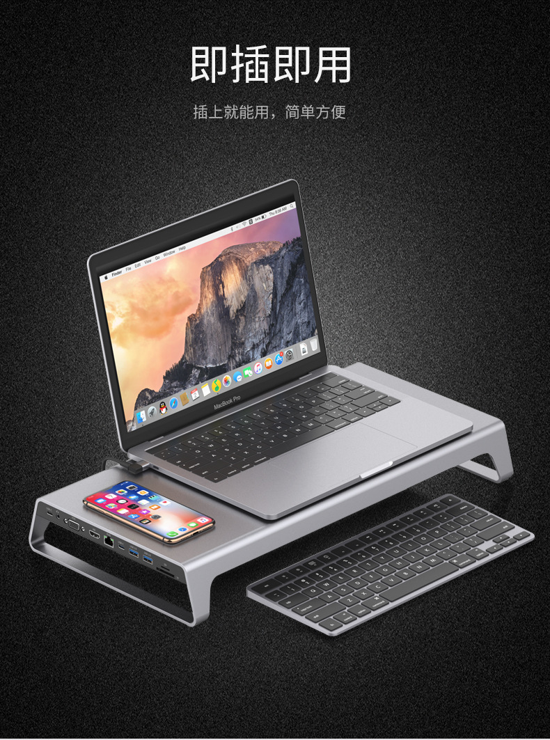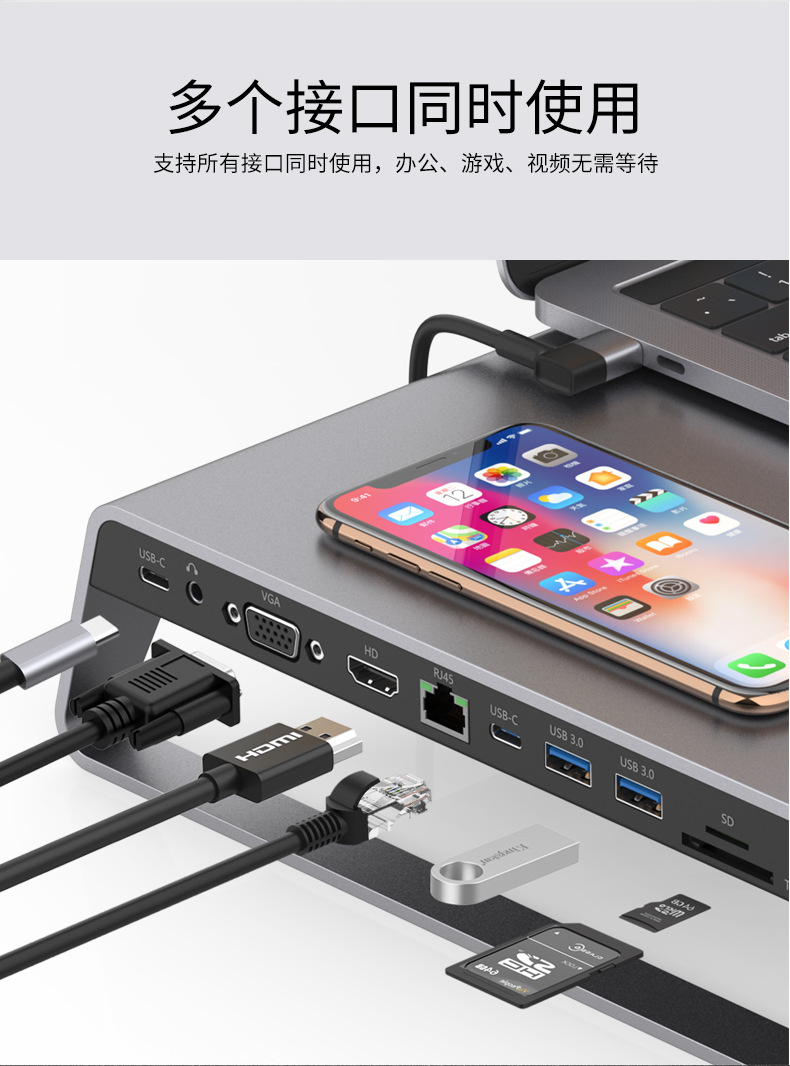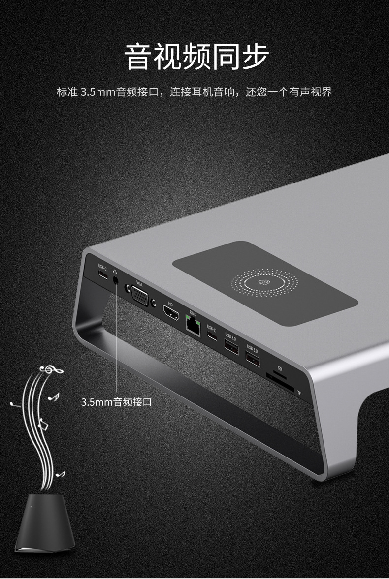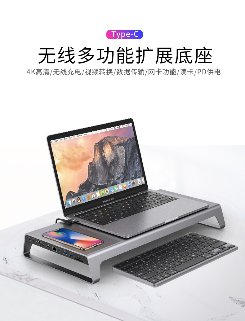 跨境USBC扩展坞带无线充电笔记本电脑多功能底座支架Type-C扩展坞