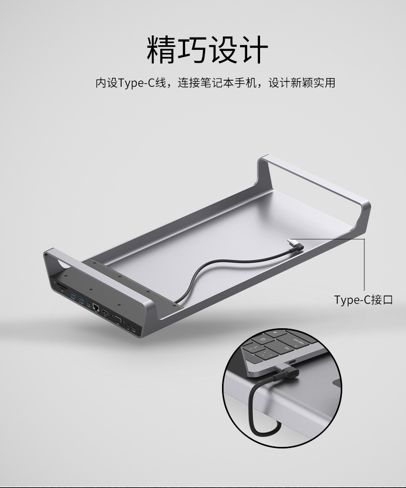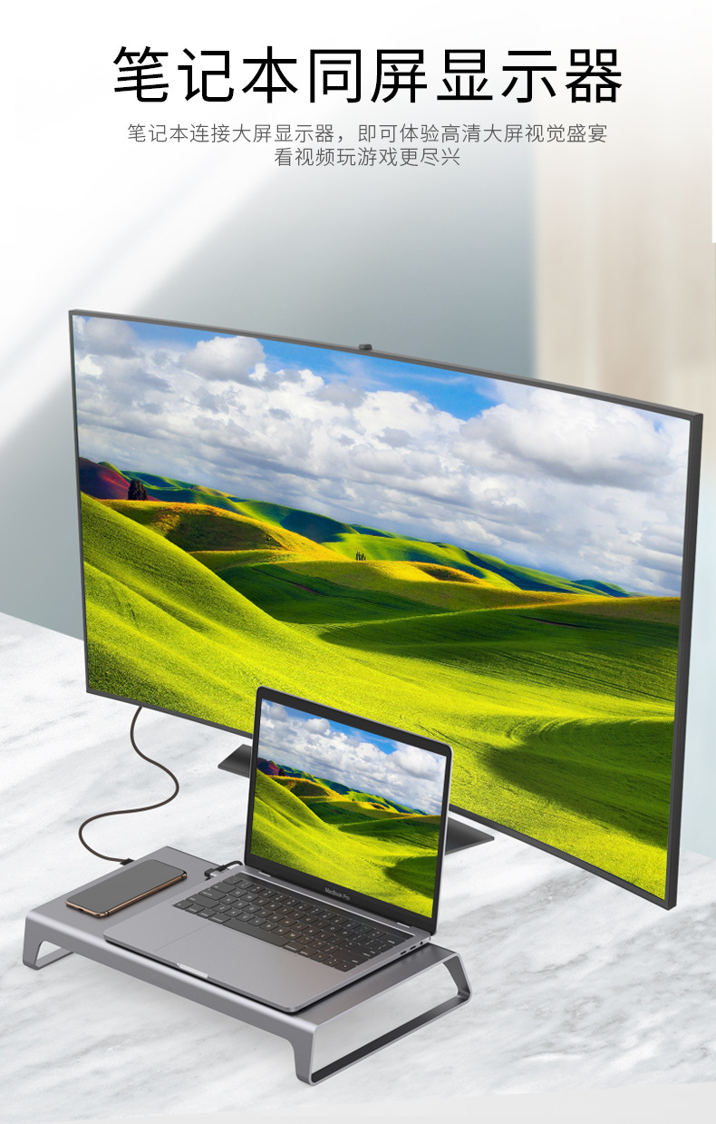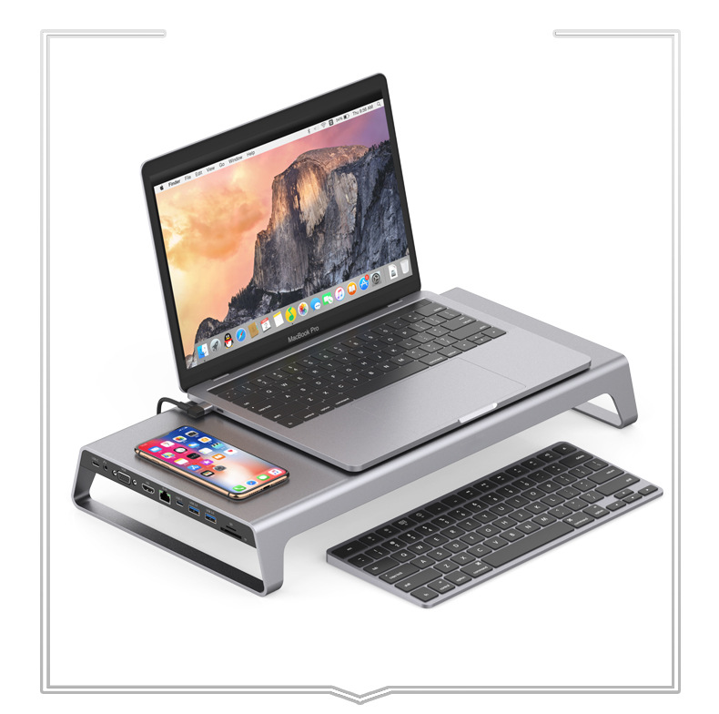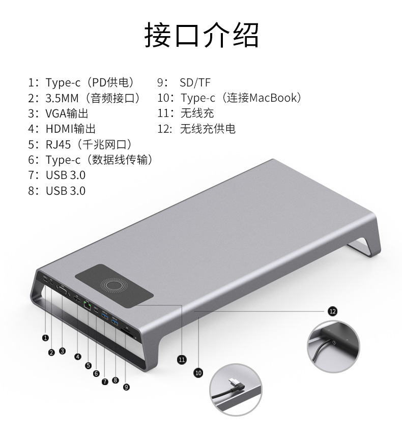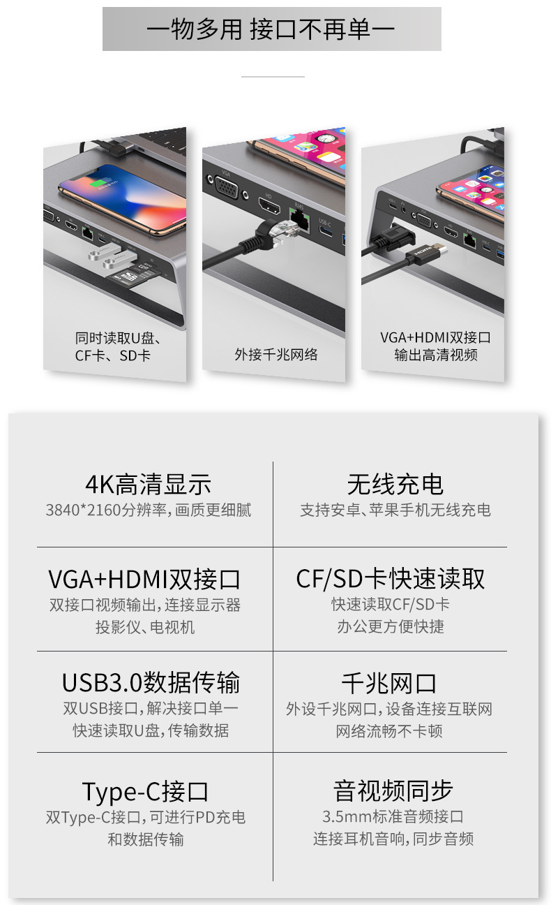跨境USBC扩展坞带无线充电笔记本电脑多功能底座支架Type-C扩展坞