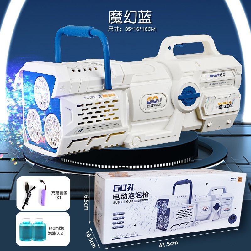 완전 자동 전기 조명 60 홀 버블 기계 총 어린이 휴대용 야외 장난감 국경 새로운 온라인 빨간색스토어 가기