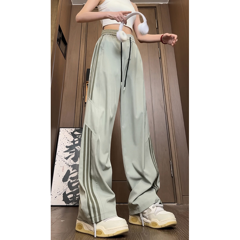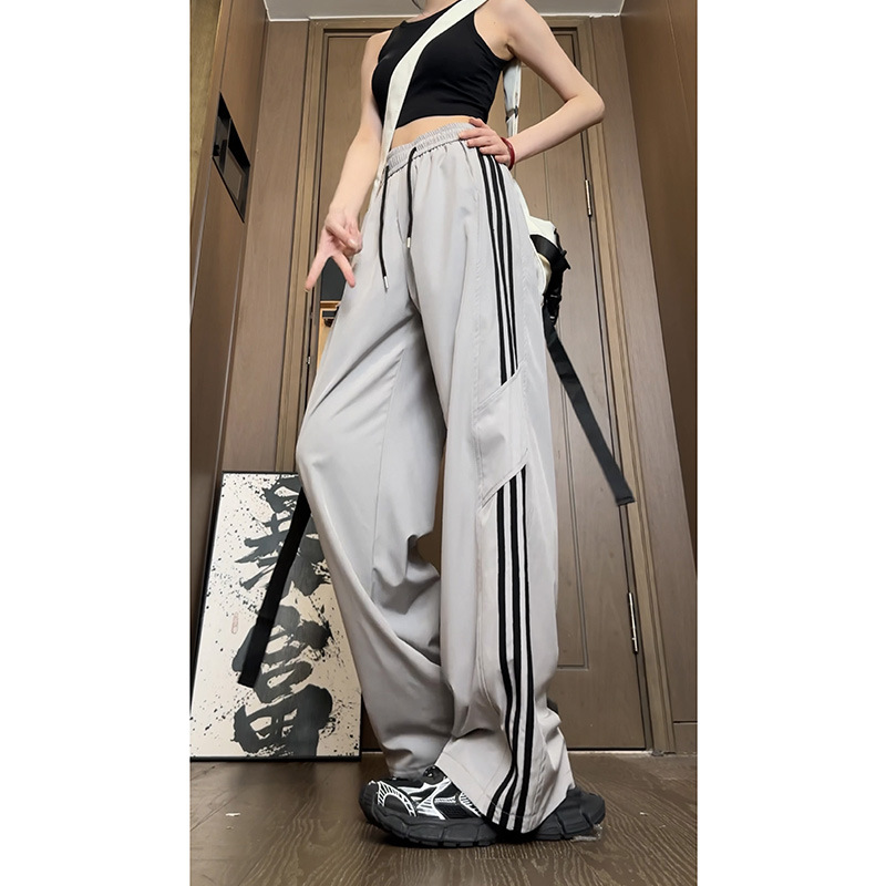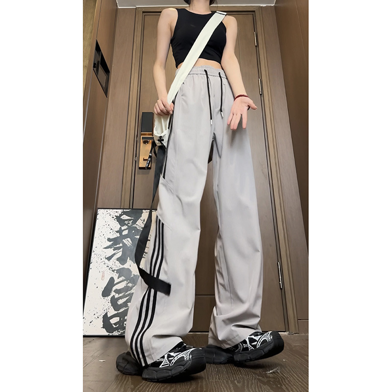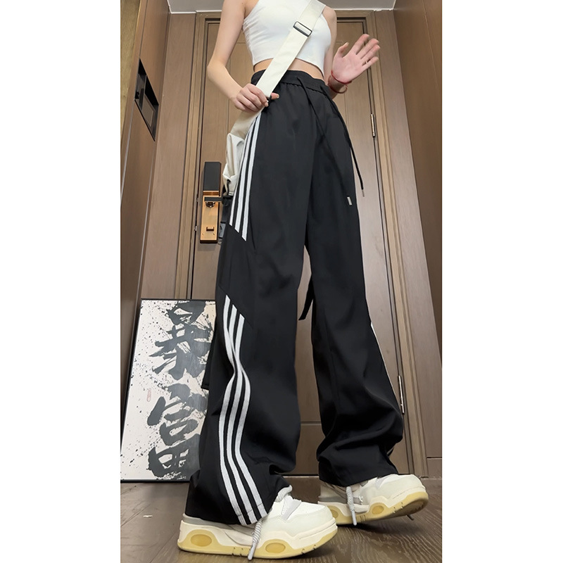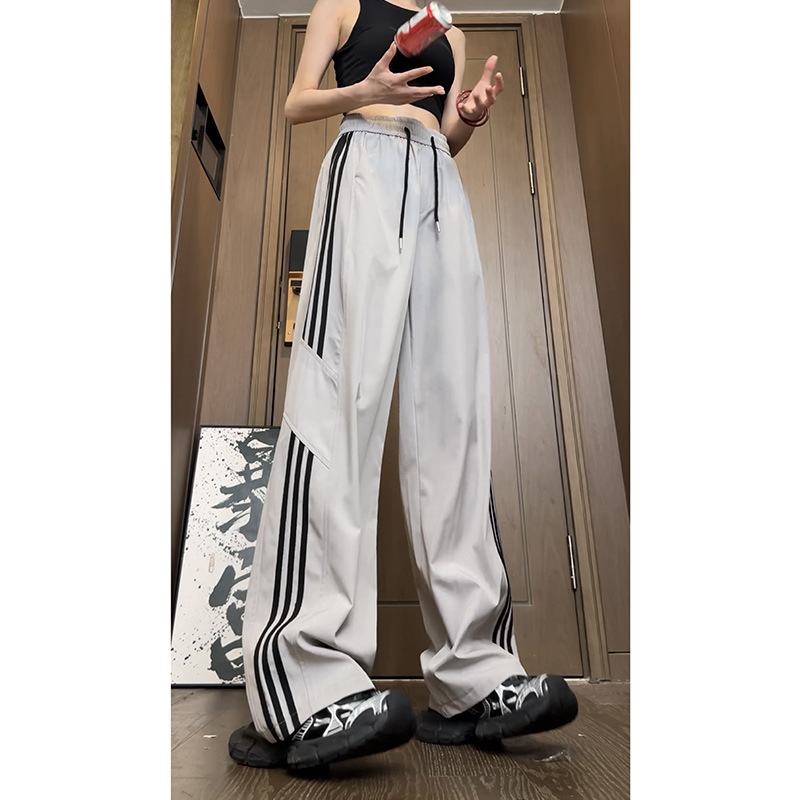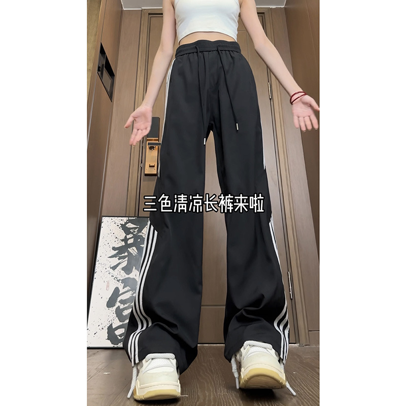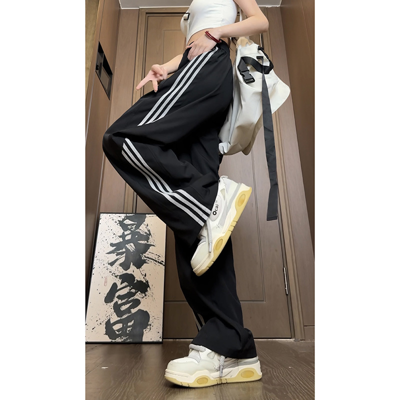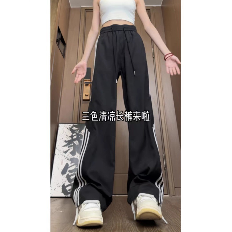 사이드 바느질 3 바 스트레이트 바지 여자 여름 새로운 소박한 바지 학생 캐주얼 스포츠 바지