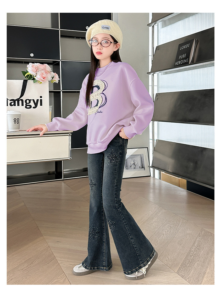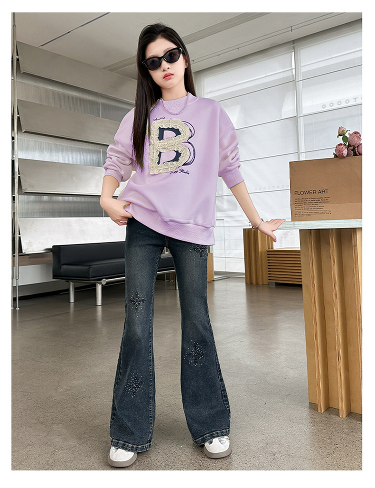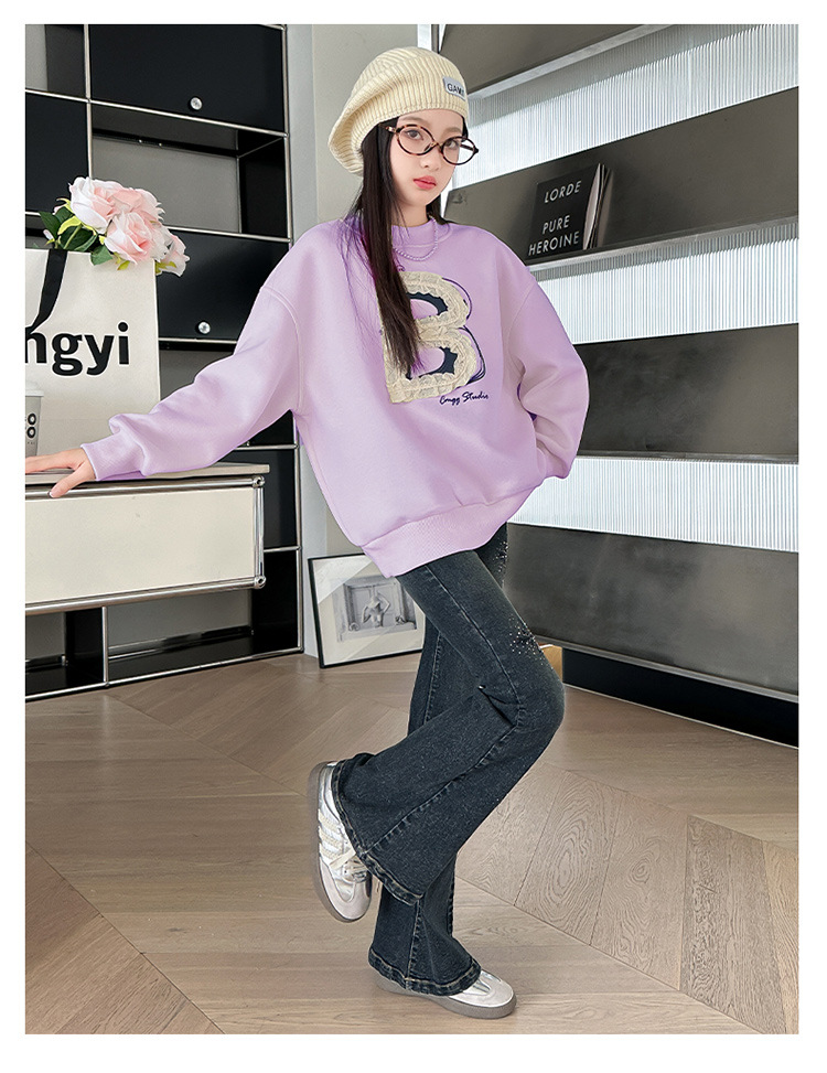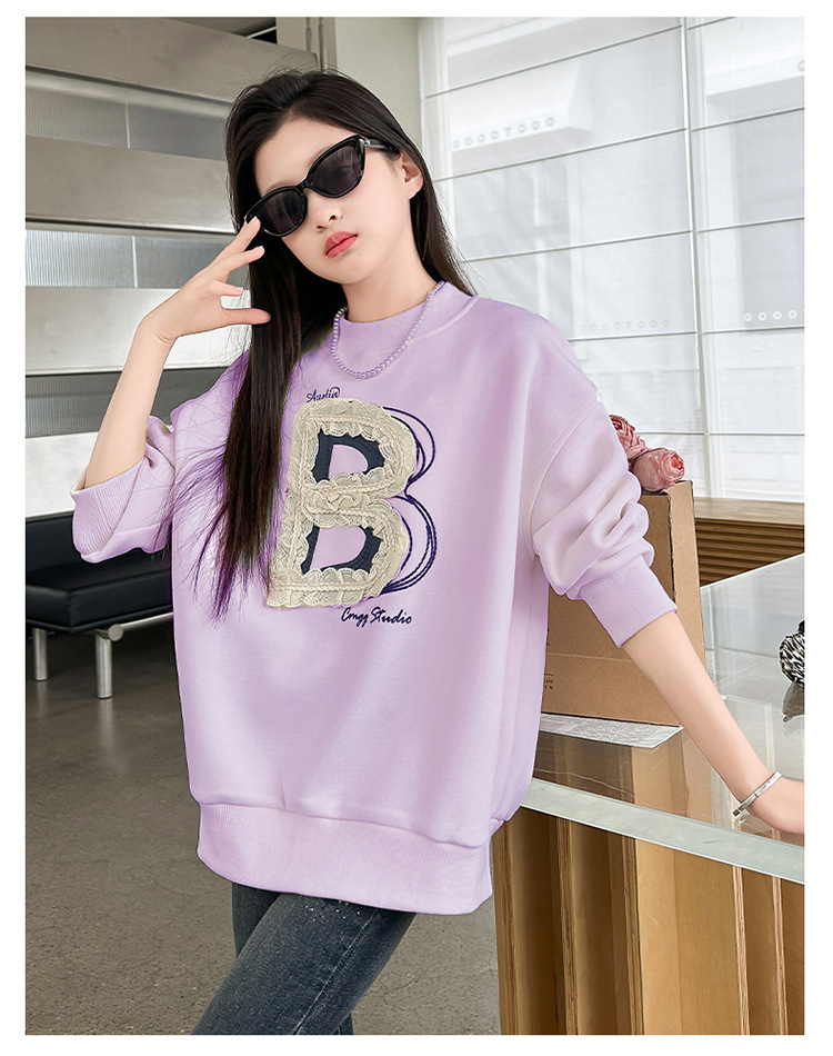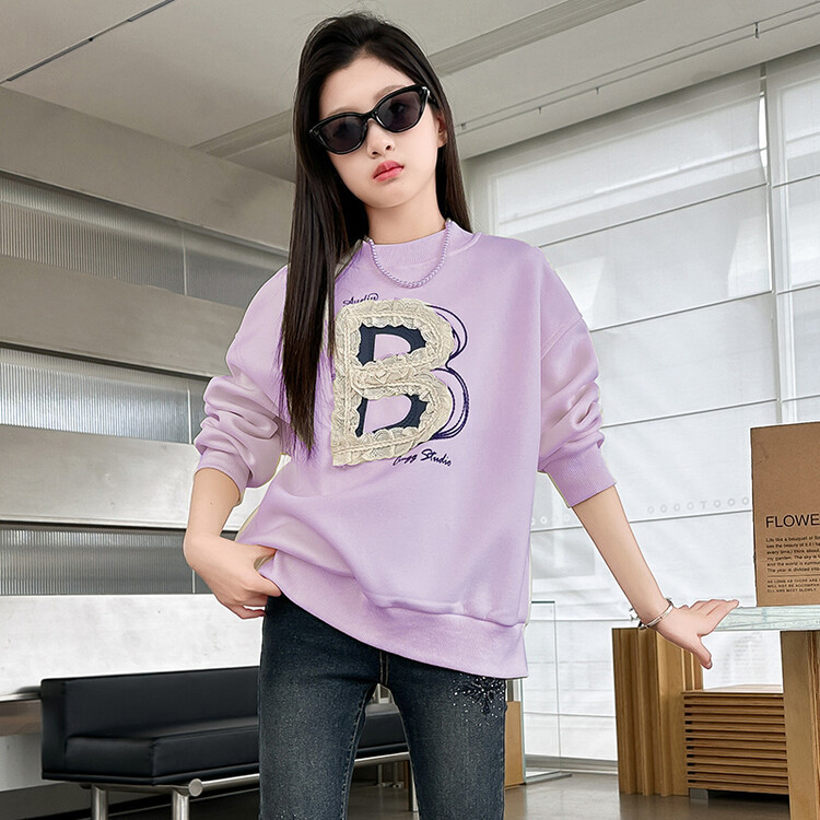 소녀의 봄과 가을 라이트 퍼플 긴 소매 스웨트 셔츠 2022 새로운 어린이 편지 수 놓은 크루 넥 루즈 티셔츠스토어 가기
