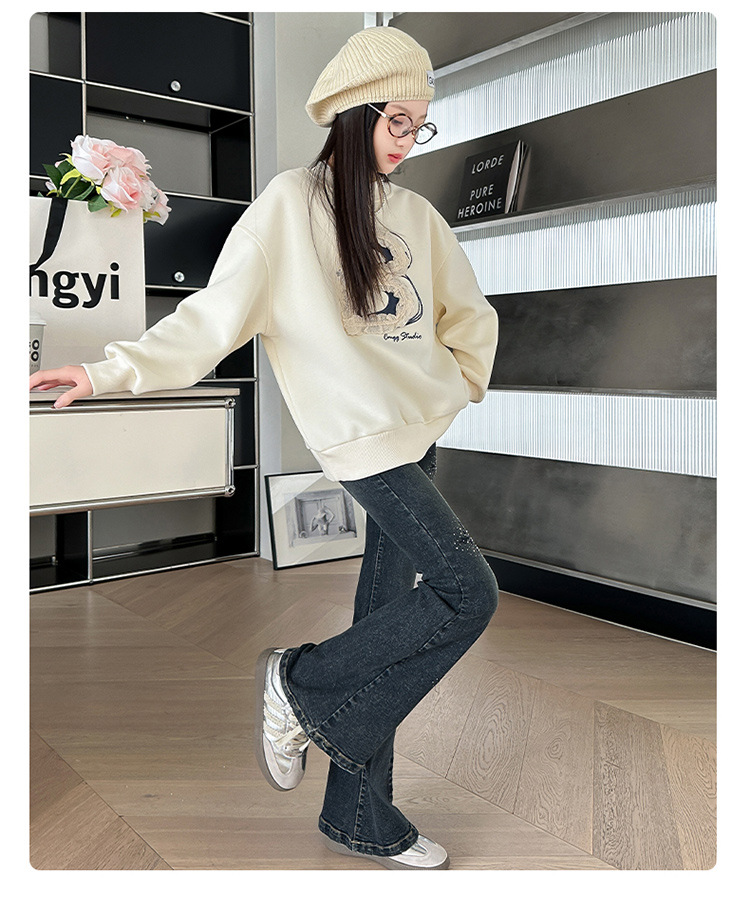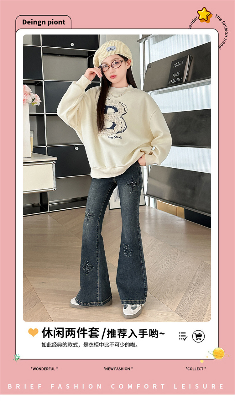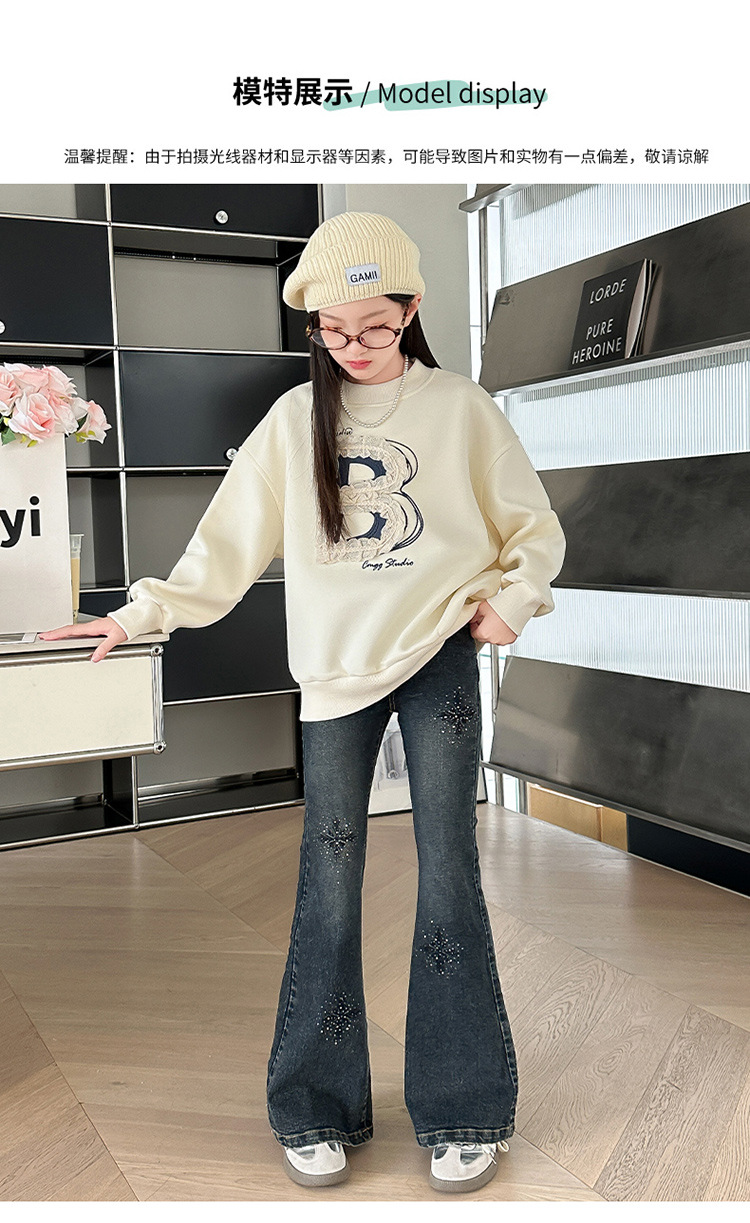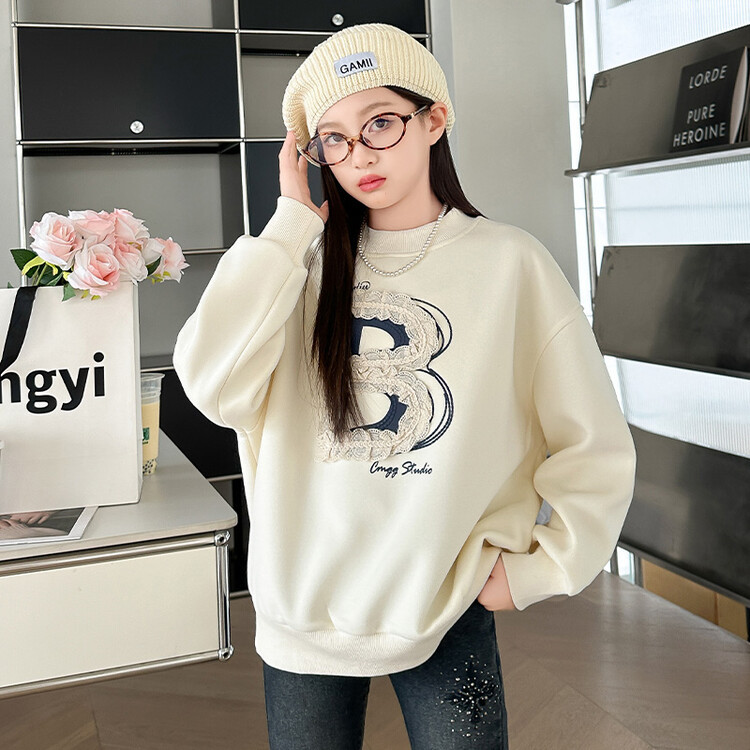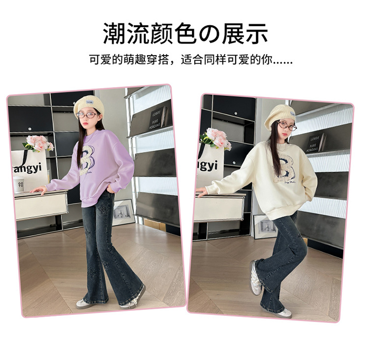 소녀의 봄과 가을 라이트 퍼플 긴 소매 스웨트 셔츠 2022 새로운 어린이 편지 수 놓은 크루 넥 루즈 티셔츠스토어 가기