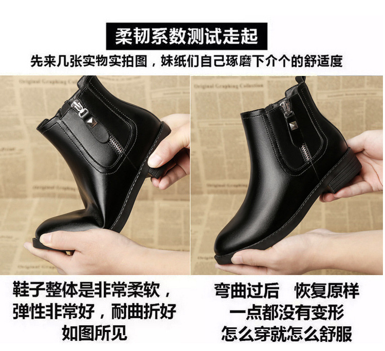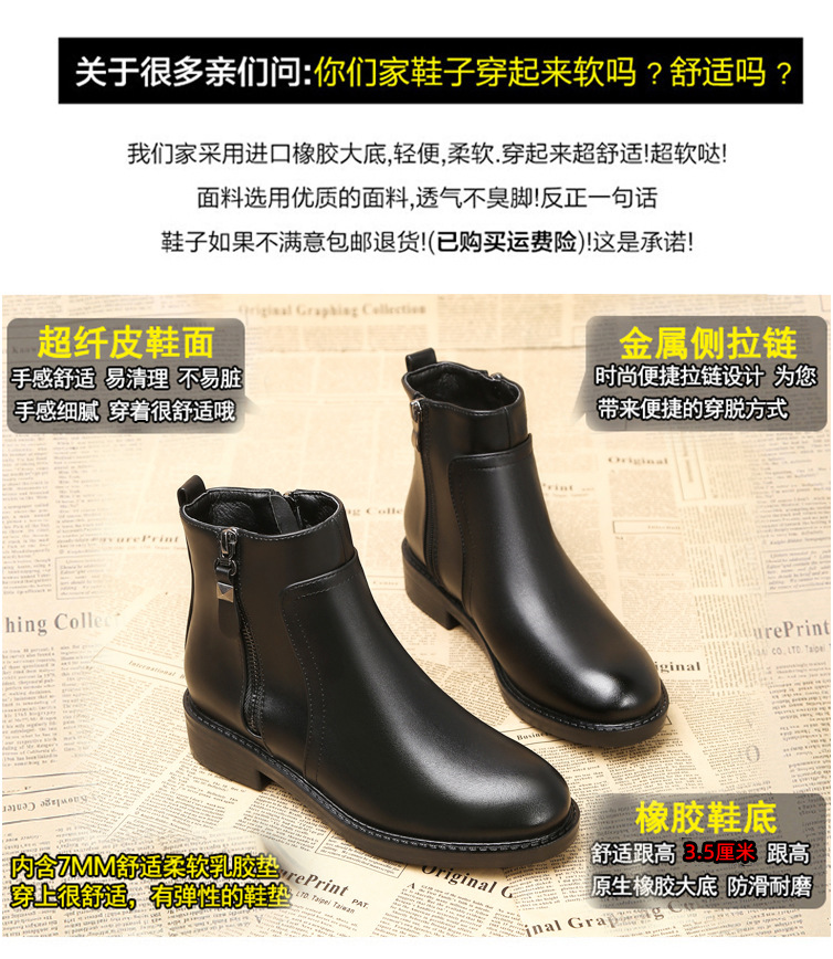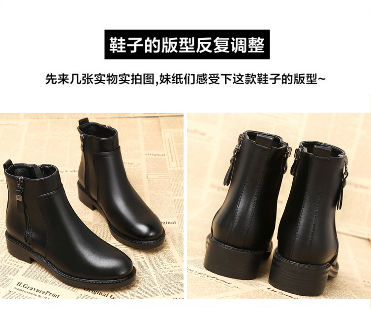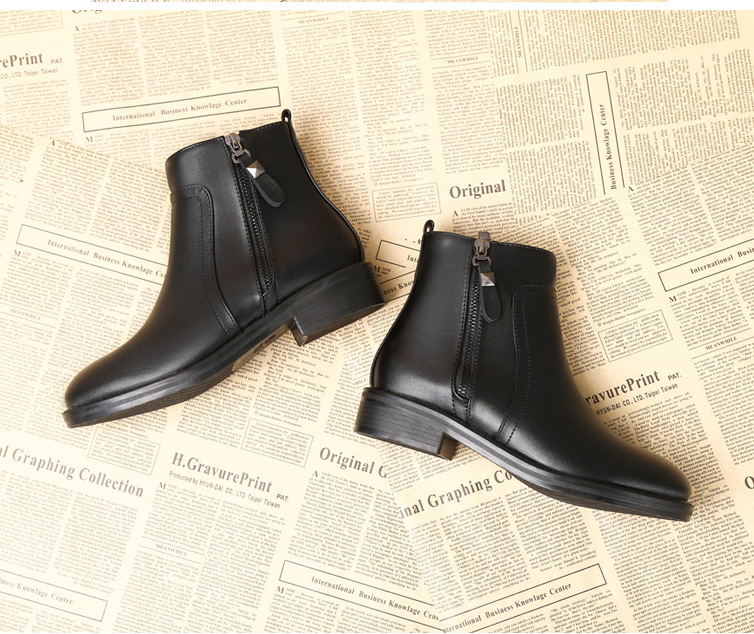 가죽 여성화 가을 겨울 라운드 토 플랫 바닥 양쪽 지퍼 프렌치 스타일 마틴 부츠 플러스 사이즈 43 숏 부츠스토어 가기