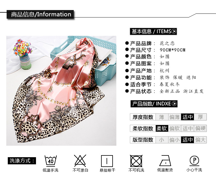 레오파드 스카프 숙녀 새틴 대형 스퀘어 실크 새틴 목도리 빈티지 체인 인쇄 헤드 스카프 도매스토어 가기