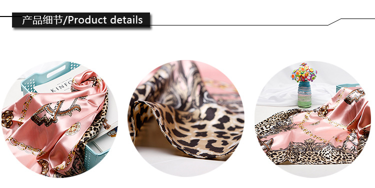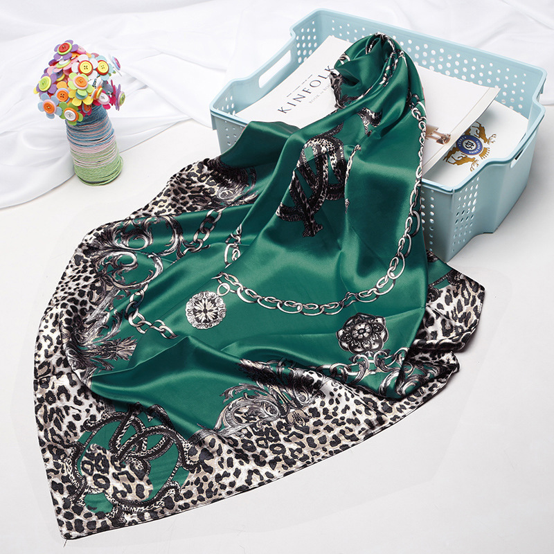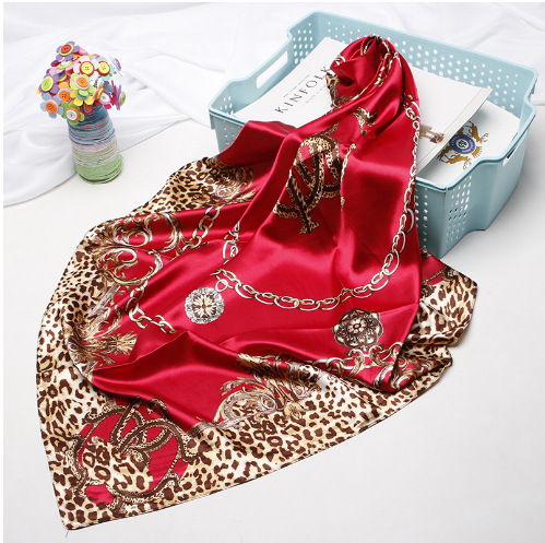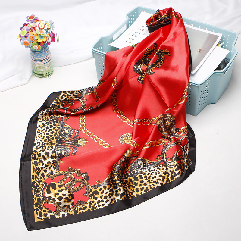 레오파드 스카프 숙녀 새틴 대형 스퀘어 실크 새틴 목도리 빈티지 체인 인쇄 헤드 스카프 도매