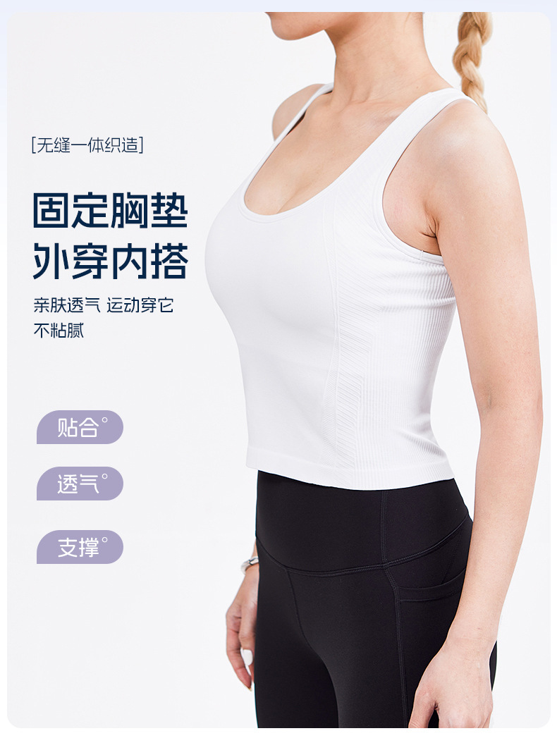 跨境瑜伽服上衣女带胸垫跑步训练健身文胸背心防震美背款运动内衣