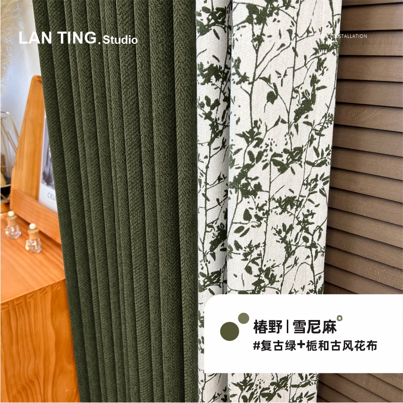 툰 와일드 커튼 2024 새로운 골동품 커튼 코튼 리넨 마일러 커튼 올리브 그린 커튼 침실 거실스토어 가기