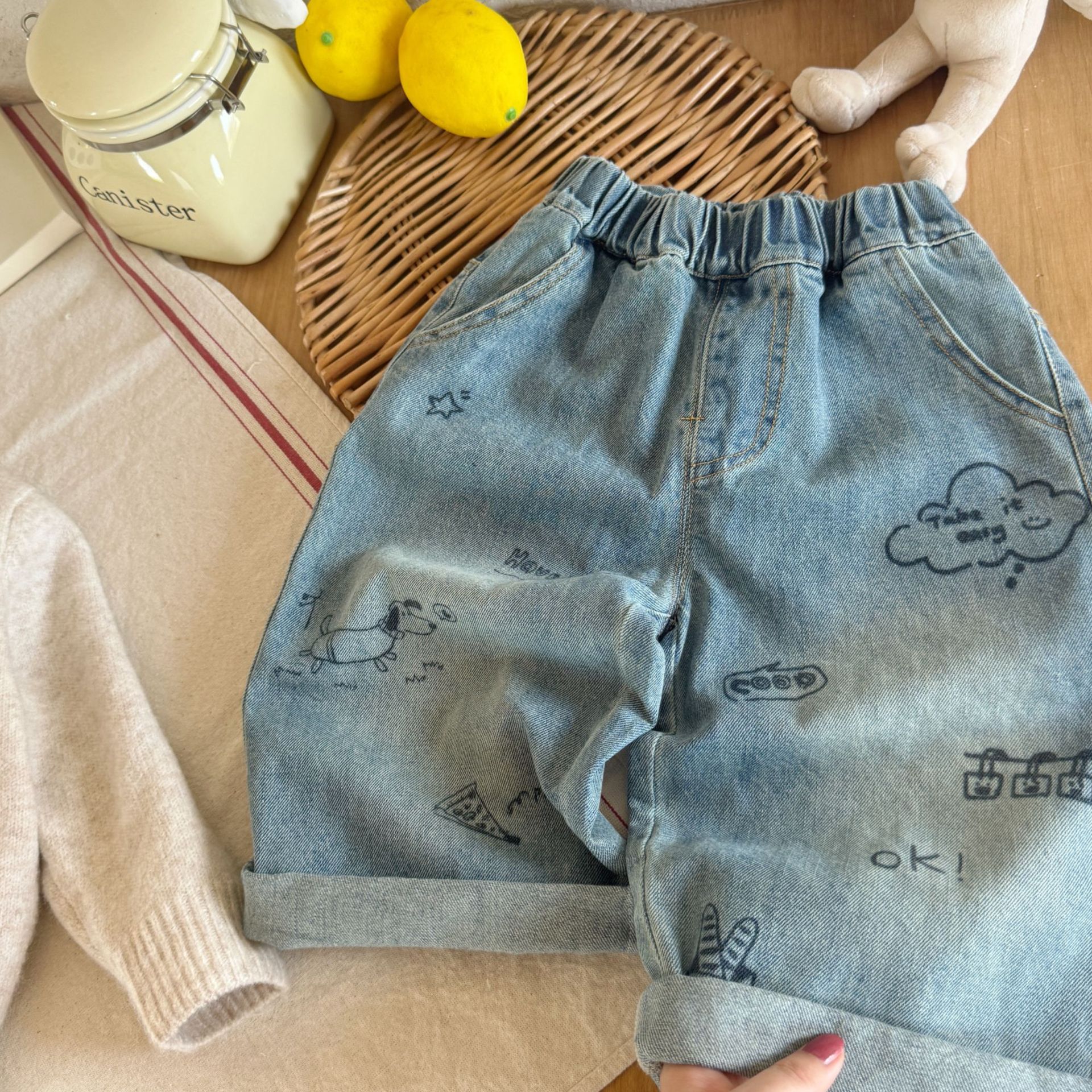 2024 새로운 청바지 한국 스타일 남녀 아기 세련된 만화 캐주얼 어린이 패션 스트레이트 청바지스토어 가기